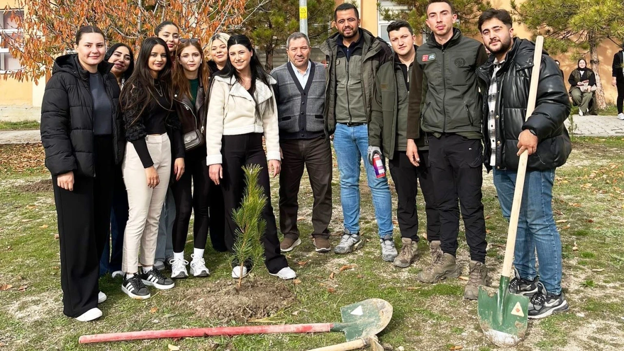 Öğrencilere doğa bilinci kazandırmak ve bölgenin ağaçlandırma çalışmalarına katkı sağlamak amacıyla Meslek Yüksekokulu bahçesinde belirlenen uygun alanlarda yürütülen etkinlik kapsamında 100 adet sedir ve 60 adet karaçam fidanı toprakla buluşturuldu.