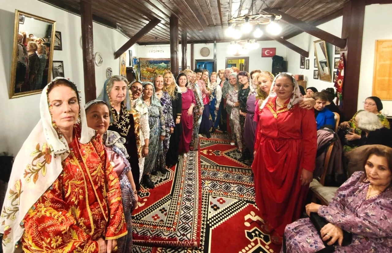 Kütahya’da Yüksek Kahve Dostlar Konağı’nda, kentin geleneksel örf ve adetlerine sahip çıkmak amacıyla "Şalvar Gecesi" düzenlendi. Geceye katılan hanımlar, yöresel şalvarlarını giyerek Kütahya’ya özgü gezek ve mübareke kültürünü canlandırdı.