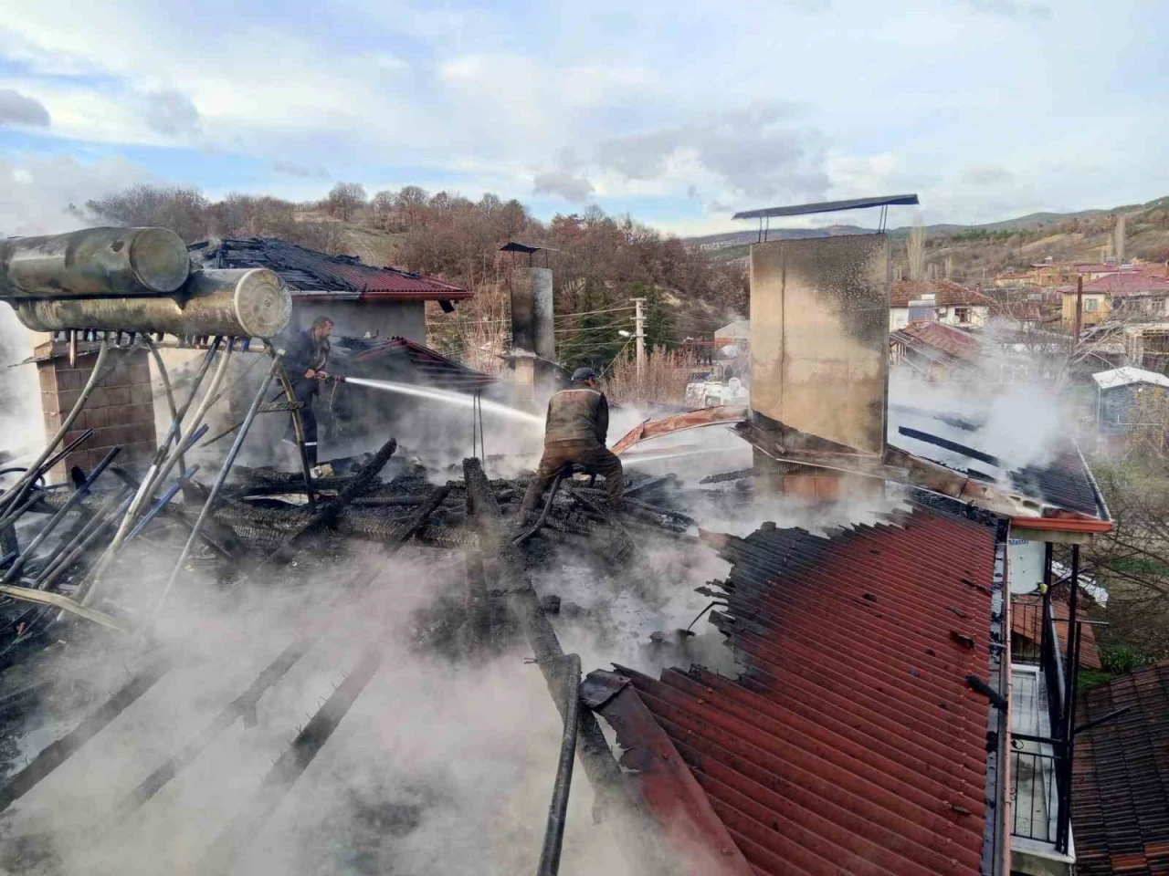 Kütahya’nın Şaphane ilçesinde çıkan yangında iki katlı bir evin çatısı zarar gördü.