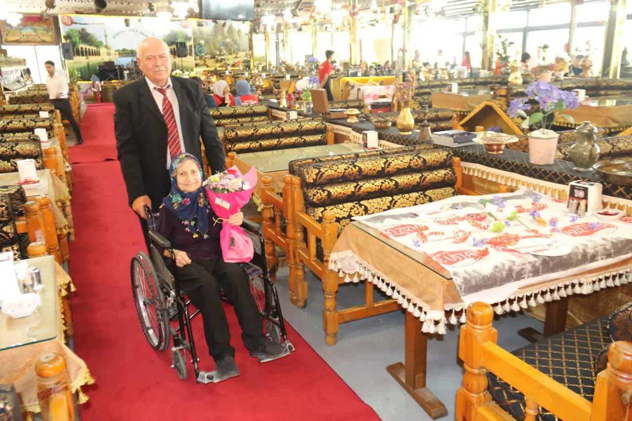 Çocukluk aşkı olan Meryem Erdem ile evlenen Mustafa Erdem, her yıl olduğu gibi bu yıl da eşini çiçeklerle mutlu etti. Üzerinde “54. yılımız kutlu olsun. Seni seviyorum” yazılı bir buketle eşini tekerlekli sandalyesiyle yemeğe götüren Mustafa Erdem, duygusal anlar yaşattı.