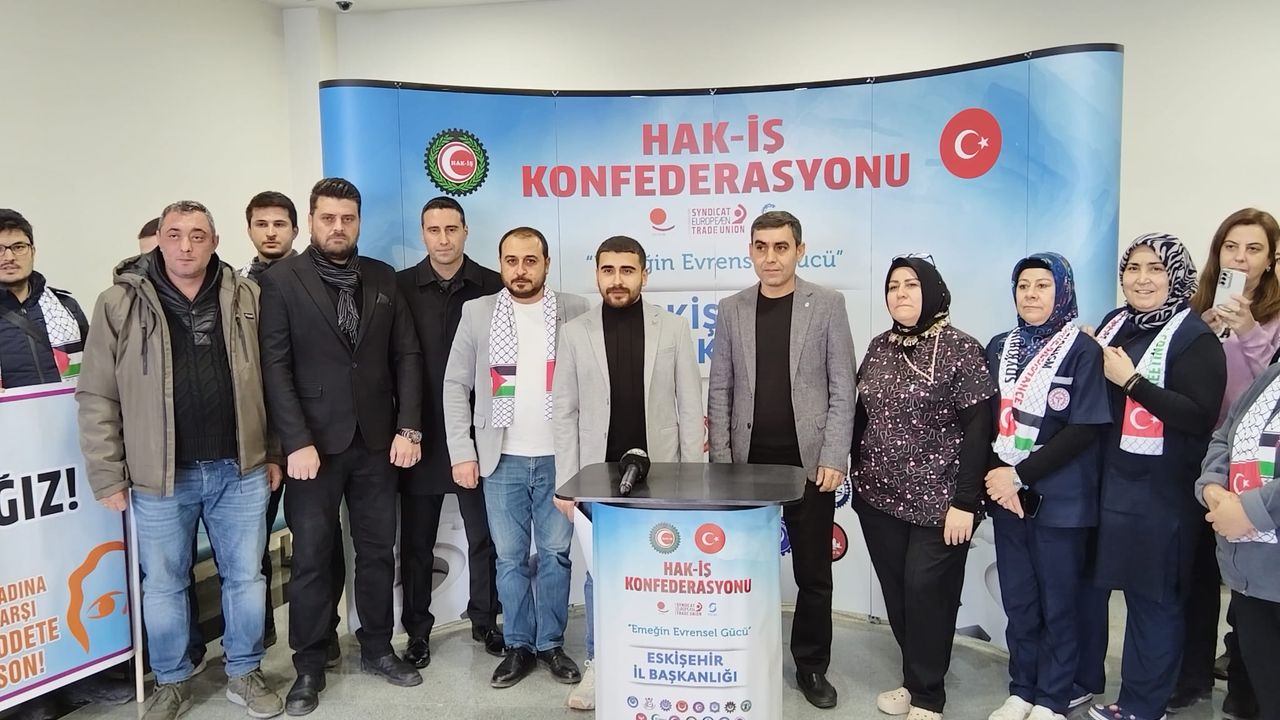 HAK-İŞ Konfederasyonu Eskişehir İl Başkanlığı adına konuşan Gökhan Kurthan Özden, 25 Kasım “Kadına Yönelik Şiddete Karşı Uluslararası Mücadele Günü” kapsamında meydanlarda olduklarını belirtti. Özden, yaptığı açıklamada şiddetin her türlüsüne karşı olduklarını vurgulayarak şu ifadelere yer verdi: “HAK-İŞ Konfederasyonu olarak, 25 Kasım “Kadına Yönelik Şiddete Karşı Uluslararası Mücadele Günü” sebebiyle 81 ilde meydanlardayız. Filistin ve Gazzeli kadın ve çocuklar başta olmak üzere tüm dünyada zulme ve şiddete maruz kalan kadın, çocuk, hayvan ve tüm canlılara yapılan şiddeti kınamak, kadın kardeşlerimiz adına güçlü bir ses vermek üzere büyük HAK-İŞ teşkilatı olarak kadını erkeği hep birlikte meydanlardayız. Bizler, nereden ve kimden gelirse gelsin şiddetin her türlüsüne karşı olduğumuzu bir kez daha haykırıyoruz. Kadın cinayetlerine, istismara, eşitsizliğe, ayrımcılığa, yoksulluğa ve güvencesizliğe son verilmesini istiyoruz. Günümüzde şiddet; fiziksel, cinsel, psikolojik, siber, ısrarlı takip ve ekonomik olmak üzere çeşitli türleriyle karşımıza çıkmaktadır. Yapılan araştırmalar, şiddete en fazla maalesef ki kadınların maruz kaldığını ortaya koymaktadır. Ülkemizde ve dünyada şiddet toplumsal bir problem haline gelmiştir. Bütün dünyanın gözleri önünde Gazze’de bir insanlık dramı yaşanmaktadır. Filistin’de savaş suçu işlenmektedir. Siyonist İsrail Gazze’de soykırım yapmaktadır. Kadınlar, çocuklar, bebekler ve masum insanlar katledilmektedir. Son bir yılda Gazze’de 18 bin çocuk, 12 bin kadın olmak üzere yaklaşık 45 bin insan katledildi, 103 bin insan yaralandı. Binlerce insan evinden, yurdundan edildi. Temel insan haklarından mahrum bırakıldı. Dünya genelinde Filistin ve Gazze gibi birçok bölgede kadınlar ve çocuklar sistematik zulme maruz bırakılmaktadır. Kudüs’te, Yemen’de, Ukrayna’da, Mısır’da, Suriye’de, Arakan’da, Afrika’da, Doğu Türkistan’da kadınlar cinsel şiddet ve etnik temizlikle karşı karşıya kalmakta, yetersiz beslenme ve hastalıklardan en çok kadın ve çocuklar etkilenmektedir. Bu yaşananlar maalesef bütün insanlığın ve BM başta olmak üzere uluslararası kuruluşların gözleri önünde yaşanmaktadır. Birleşmiş Milletler ve diğer uluslararası kuruluşların görevi, savaşları izlemek değil, kalıcı bir barışı tesis etmektir. Bu soykırım karşısında dünya suskun olsa da HAK-İŞ olarak biz susmayacağız. Gerçeği haykırmaya devam edeceğiz. Buradan “Birleşememiş” milletler başta olmak üzere; uluslararası kuruluşlara, İslam İşbirliği Teşkilatına, Avrupa Birliğine, Arap Birliğine, bölge ülkelerine ve insan hakları kuruluşlarına sesleniyoruz: