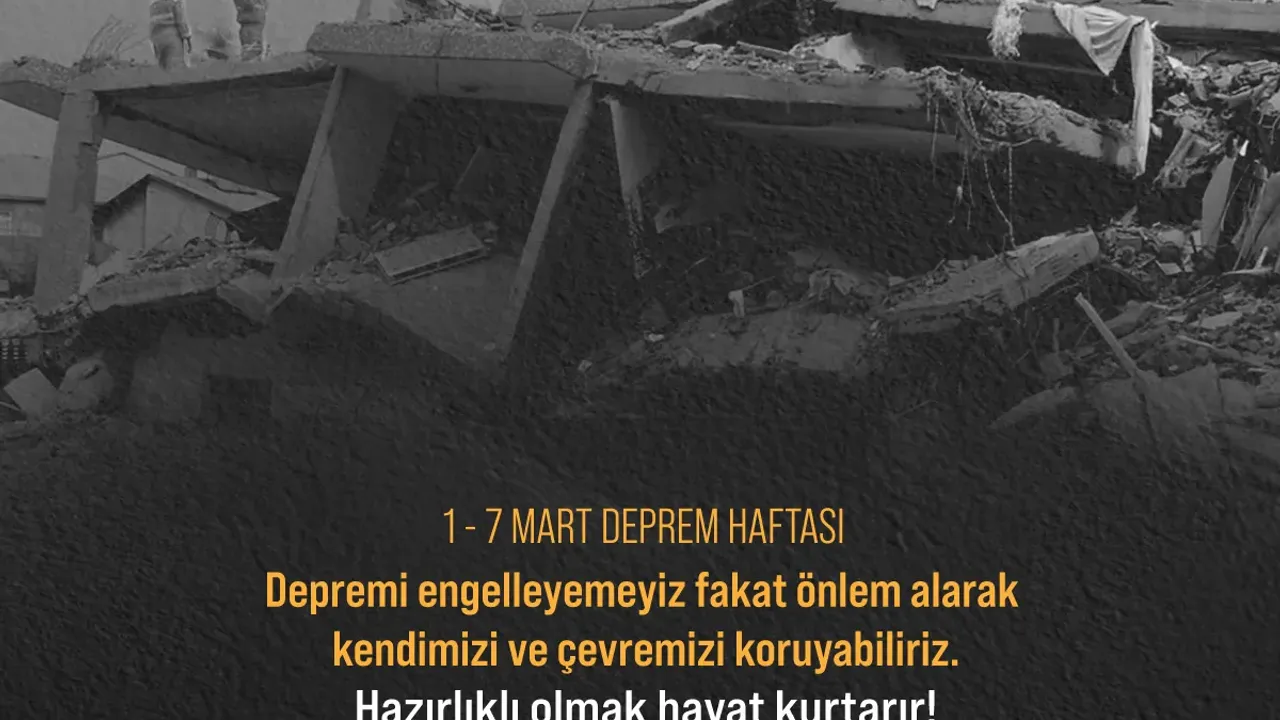 Eskişehir Sanayi Odası Yönetim Kurulu, 1-7 Mart tarihlerinin Deprem Haftası olarak kabul edildiğini duyurdu. Depremin engellenemeyeceğini ancak alınacak önlemlerle can ve mal kaybının en aza indirilebileceğini belirtti. "Hazırlıklı olmak hayat kurtarır!" ifadesini kullanan kurul, deprem öncesi hazırlıkların önemine dikkat çekti.