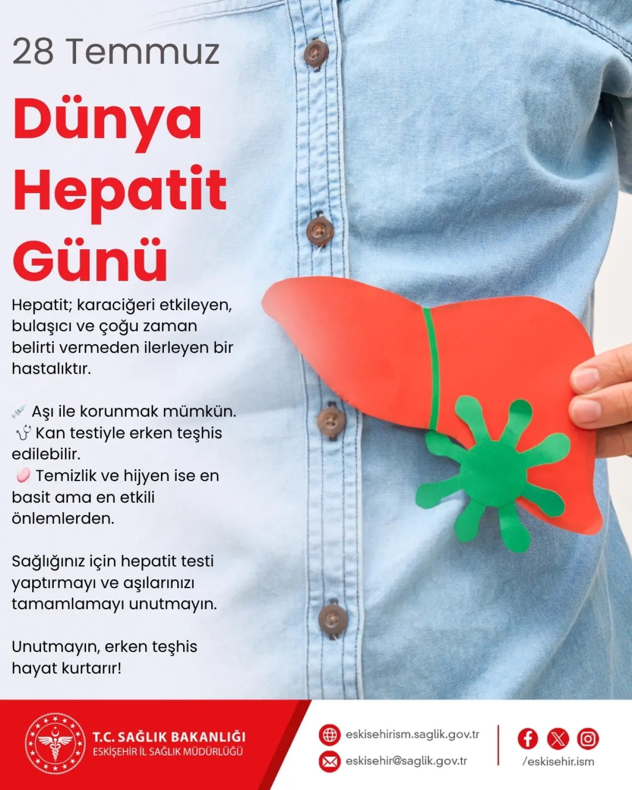 Eskişehir İl Sağlık Müdürü Doç. Dr. Yaşar Bildirici, 28 Temmuz Dünya Hepatit Günü dolayısıyla yaptığı açıklamada, dünyada milyonlarca insanı etkileyen viral hepatitlerin ciddi bir halk sağlığı tehdidi olduğunu belirterek, erken tanının hayati önem taşıdığına dikkat çekti.