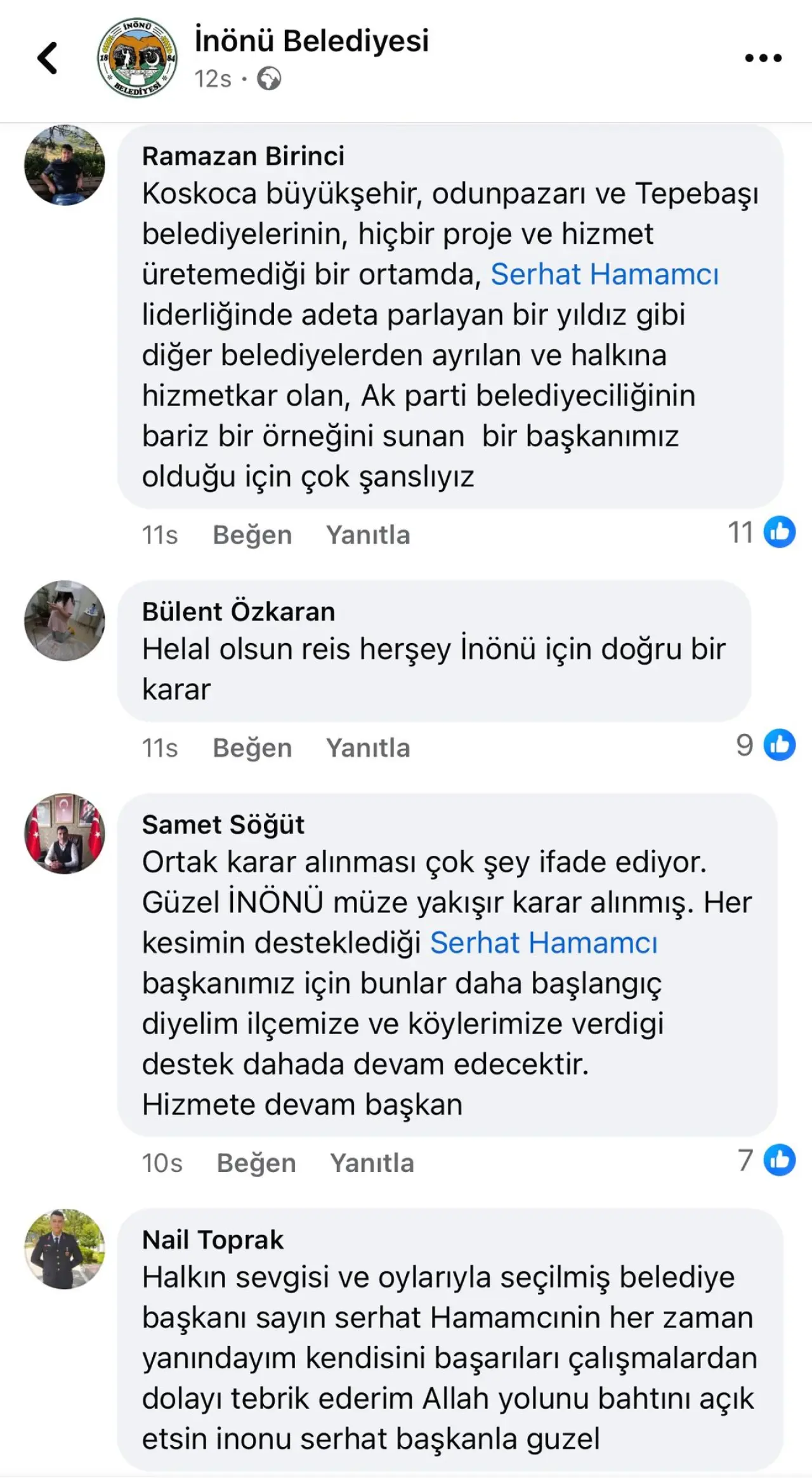 Sosyal medyada yapılan paylaşım kısa sürede yüzlerce yorum aldı. Yorumların büyük kısmında karar desteklenirken, Belediye Başkanı Serhat Hamamcı’ya yönelik destek mesajları dikkat çekti.