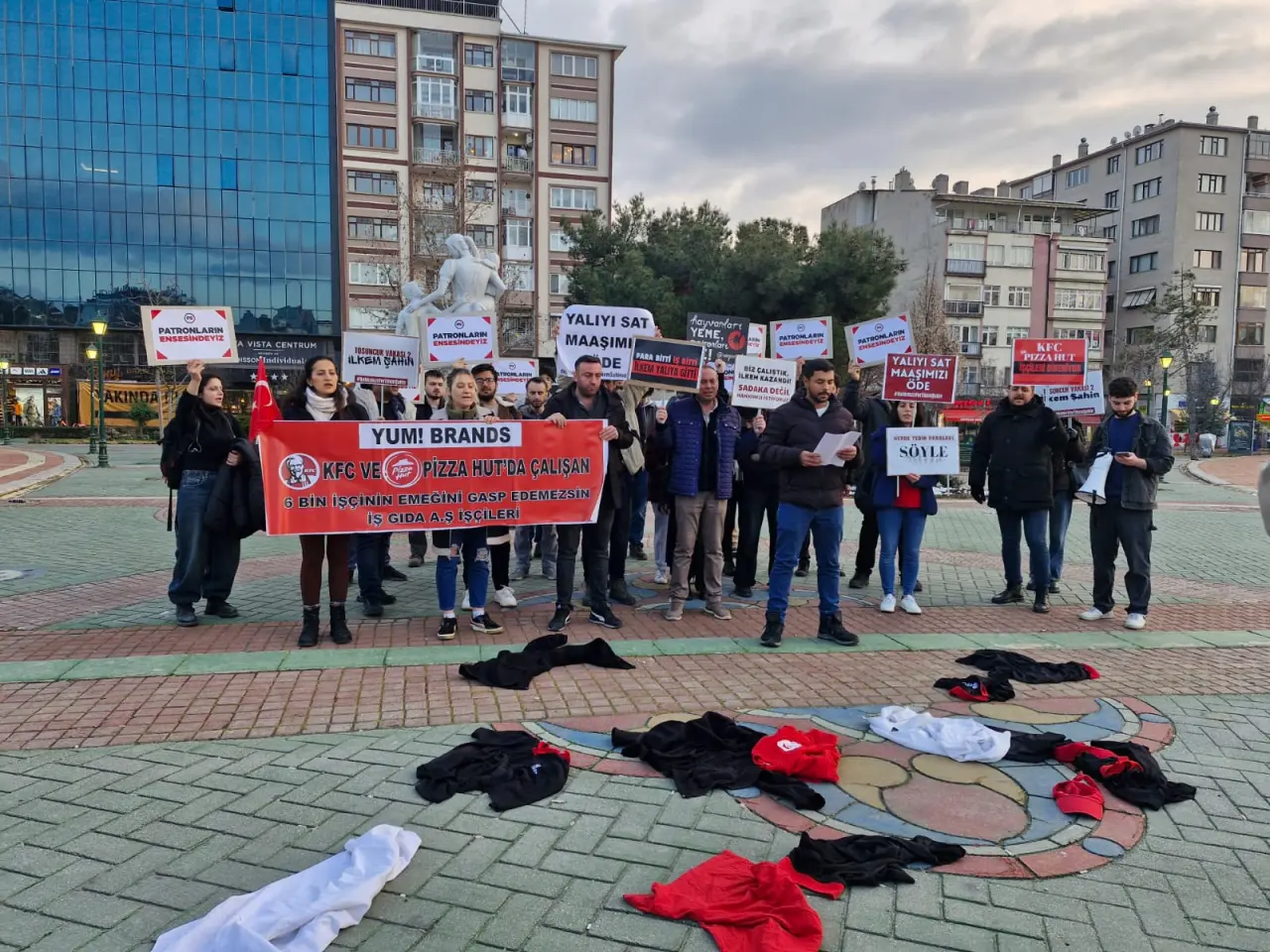 İş Gıda işçileri, haklarını almak için başlattıkları eylemlerine devam ettiklerini duyurdu. Grubun sözcüsü İbrahim Demir, geçtiğimiz ay ABD menşeli KFC ve Pizza Hut’ın Türkiye temsilcisi olan İŞ Holding’in 7,7 milyar TL borçla konkordato talebinde bulunduğunu hatırlattı. Demir, bu süreç sonrasında mahkemenin, grup şirketleri ve sahibi İlkem Şahin için üç aylık geçici mühlet kararı verdiğini belirterek, Türkiye genelindeki 6 binden fazla işçinin maaşlarını alamadığını, kıdem tazminatları ve diğer hakları için mücadele ettiğini söyledi.