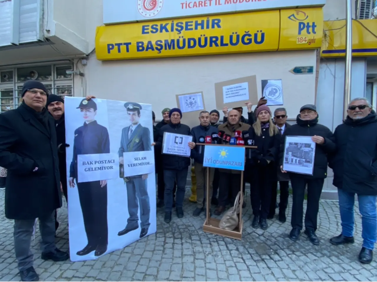 İYİ Parti Eskişehir Odunpazarı İlçe Başkanı Gürol Yer, PTT önünde basın açıklaması düzenledi. Açıklamada, PTT’de hayata geçirilmesi planlanan bölge müdürlüğü değişiklikleri, şube kapatmaları ve personel nakilleri eleştirildi.