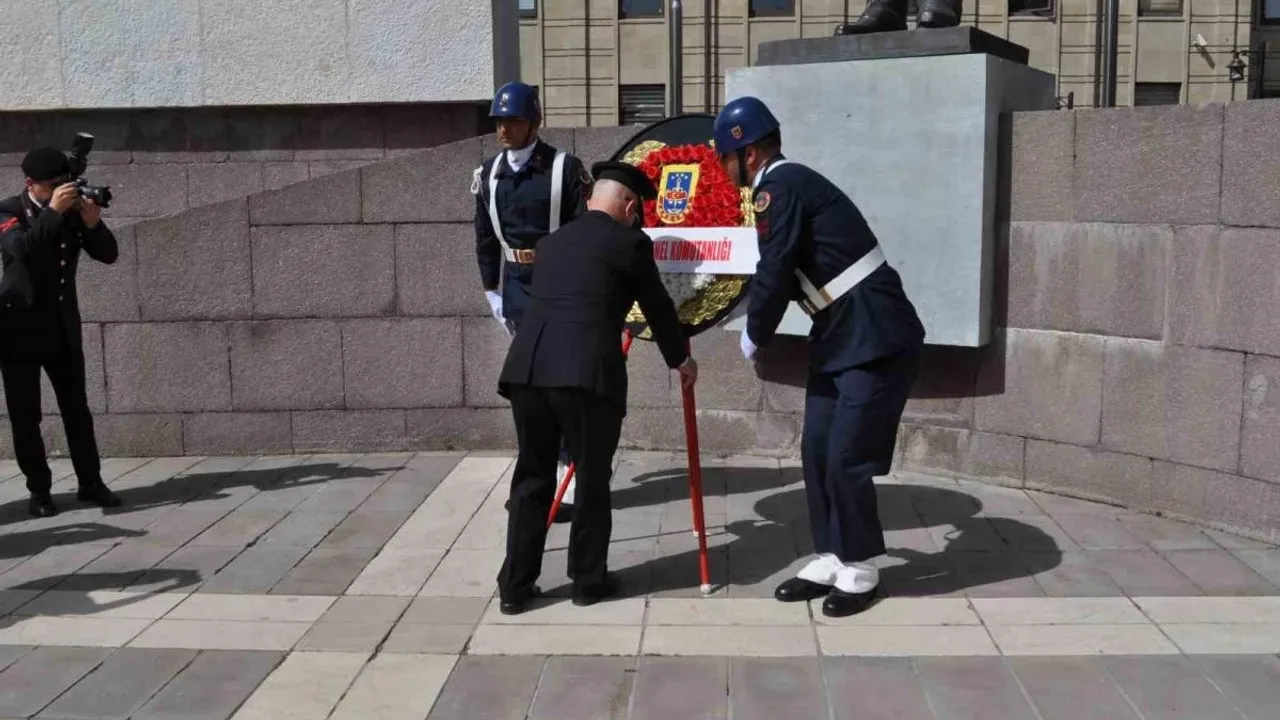 Eskişehir Valilik Meydanı'nda gerçekleştirilen program ile Jandarma Teşkilatı'nın 185'inci kuruluş yıldönümü dolayısı ile Atatürk anıtı önüne çelenk bırakıldı.