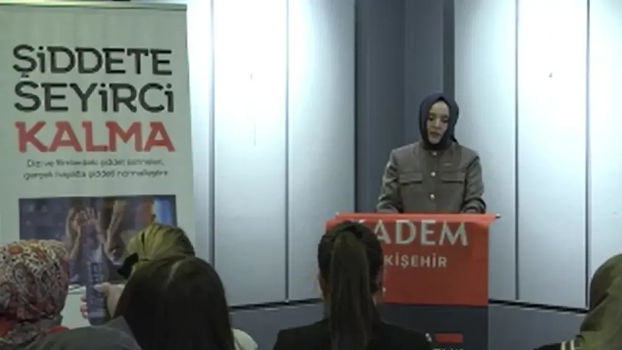 Eskişehir KADEM İl Temsilcisi Mehtap Özkaya, 25 Kasım Uluslararası Kadına Yönelik Şiddetle Mücadele Günü ile ilgili yaptığı konuşmada bu yıl ki sloganlarının "şiddete seyirci kalma" olduğunu söyledi. Özkaya, geçtiğimiz yıl en çok izlenen 14 yerli yapım diziyi kadına yönelik şiddet bağlamında değerlendirdiklerini söyledi. İncelemeye konu olan 14 dizide toplam 327 bölümde 3 bin 13 kadına yönelik şiddet sahnesi tespit ettiklerini dile getiren Özkaya, "25 Kasım Uluslararası Kadına Yönelik Şiddetle Mücadele Günü vesilesiyle bir aradayız. Tüm dünyada kadınlar özel ve kamusal alanda farklı şiddet türlerine maruz kalıyorlar. Bu gerçeğe dikkat çekmek ve kadına yönelik şiddete karşı toplumda farkındalık yaratmak adına 25 Kasım önemli bir gündür. Bu yıl ki hazırladığımız kampanyamızın sloganı ise "şiddete seyirci kalma". Bu sloganla vermeyi hedeflediğimiz mesajlar var. Medyada geçen kadına yönelik şiddet konusu bizimde uzun zamandır gündemimizde yer alıyor. Medyada kadına yönelik şiddet ve izleyici farkındalığı, yerli diziler üzerinde inceleme başlıklı önemli araştırmayı hayata geçirdik. Bu araştırmada geçtiğimiz yıl en çok izlenen 14 yerli yapım diziyi kadına yönelik şiddet bağlamında inceledik. Bu araştırmada dizilerde işlenen şiddet türlerini, bu türlerin oranlarını, yaygınlığını, izleyicilerin dizilerdeki kadına yönelik şiddete dair farkındalığını ve şiddet sahnelerinden etkilenme durumlarını ölçtük. İncelemeye konu olan 14 dizide toplam 327 bölümde 3 bin 13 kadına yönelik şiddet sahnesi tespit ettik. En çok karşılaşılan şiddet türlerine baktığımızda ise yüzde 51 oranında psikolojik, yüzde 24 sözlü, yüzde 11 çok boyutlu ve karmaşık, yüzde 8 fiziksel şiddet tespit ettik. Kadına yönelik şiddetin bütün türleri diziler aracılığıyla evimize sızıyor. Bu sebeple bizler kampanya boyunca "şiddete seyirci kalma" diyerek televizyon dizilerindeki kadına yönelik şiddet ve türlerine, etkilerine dikkat çekip sizlerle paylaşacağız. Kampanyamızın kadına yönelik şiddete karşı bireysel ve toplumsal farkındalık oluşmasını diliyor, hepinize duyarlılığınızdan dolayı teşekkür ediyorum" ifadelerini kullandı.