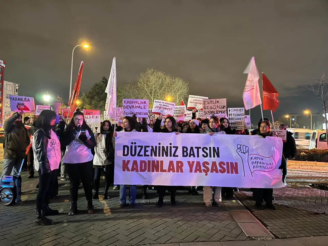 “Kadınların yaşamı kimsenin tekelinde değildir. Kadınların öldürülmediği, sömürülmediği ve özgürce yaşayabileceği bir düzen kuracağız. Gericiliğe, sömürüye ve karanlığa boyun eğmeyeceğiz. Bu düzeni değiştireceğiz!”