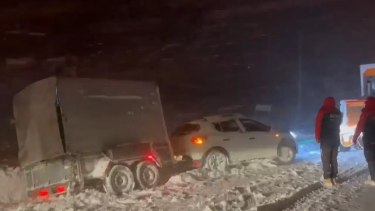 İhbar üzerine bölgeye jandarma ekipleri ile İl Özel İdaresi’ne bağlı iş makineleri sevk edildi. Zorlu hava ve yol koşullarına rağmen ekipler, yaklaşık 1 saat süren çalışmaların ardından araçta mahsur kalan 2 kişiyi bulundukları yerden kurtardı.