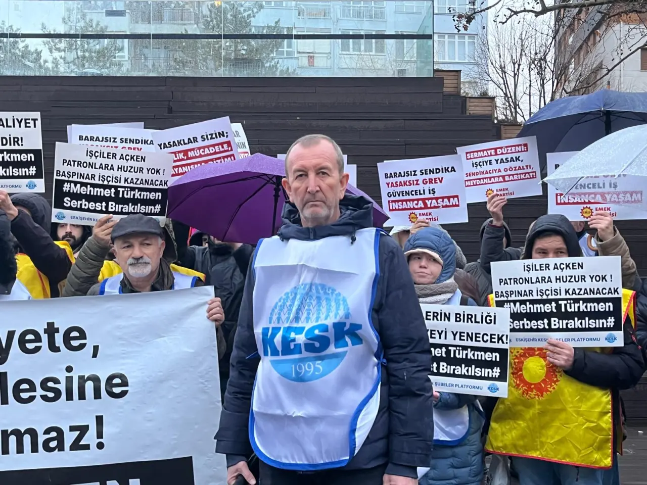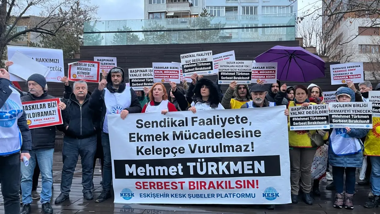 KESK Eskişehir Şubeler Platformu adına açıklama yapan Eğitim-Sen Eskişehir Şube Başkanı Özkan Demirkol, Gaziantep Başpınar Organize Sanayi Bölgesi’nde (OSB) hakları için direnen işçilere yönelik baskılara ve sendikal haklara yapılan müdahalelere tepki gösterdi. Demirkol, BİRTEK-SEN Genel Başkanı Mehmet Türkmen’in tutuklanması, işçilerin eylemlerinin yasaklanması ve sendikal faaliyetlere yönelik baskıların kabul edilemez olduğunu belirtti.