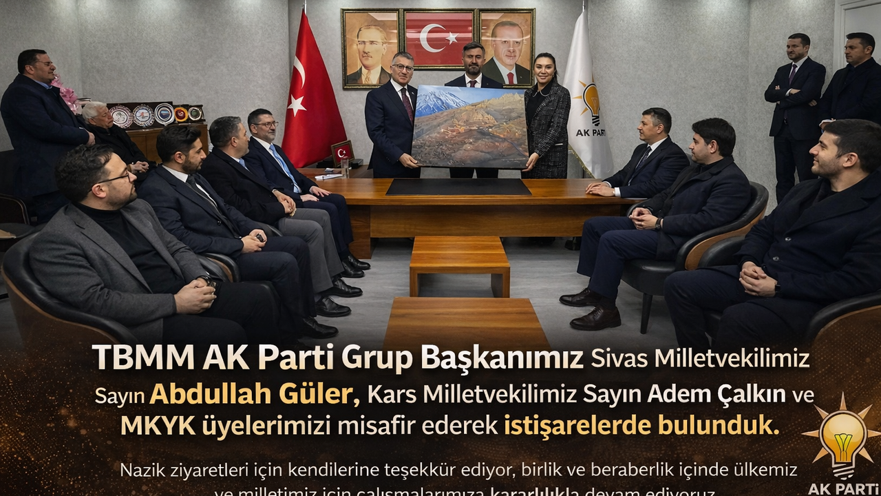 "Grup Başkanımız Sayın Abdullah Güler, Milletvekilimiz Sayın Adem Çalkın ve MKYK üyelerimizi kadim kentimiz Ağrı'da misafir ederek istişarelerde bulunduk. Nazik ziyaretleri için kendilerine teşekkür ediyor; birlik ve beraberlik içinde ülkemiz ve milletimiz için çalışmalarımıza kararlılıkla devam ediyoruz."