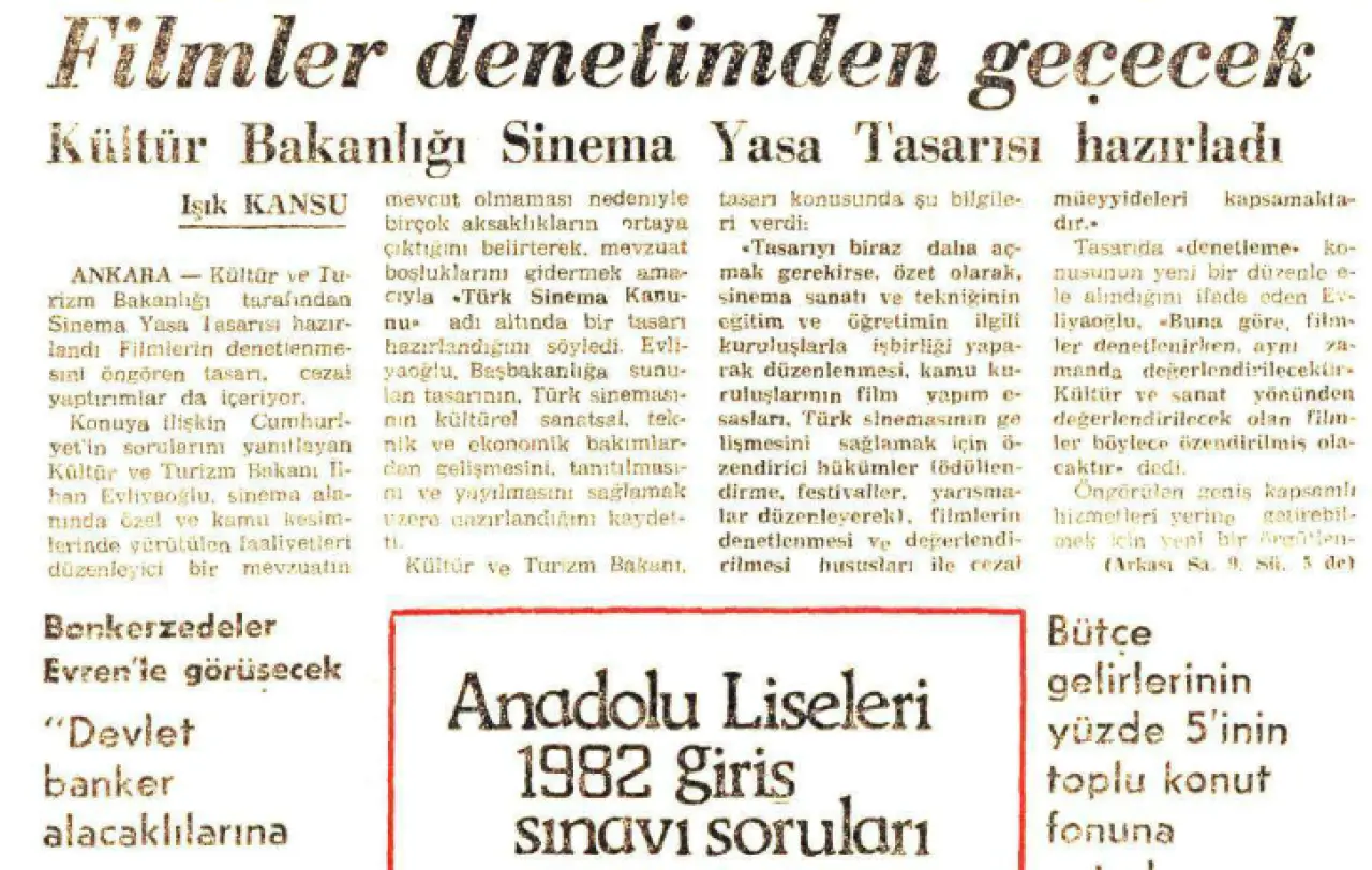 1983- Kültür Bakanlığı'nca Sinema Yasa Tasarısı hazırlandı. Bakanlık tasarıyla filmlere denetim getiriyordu.