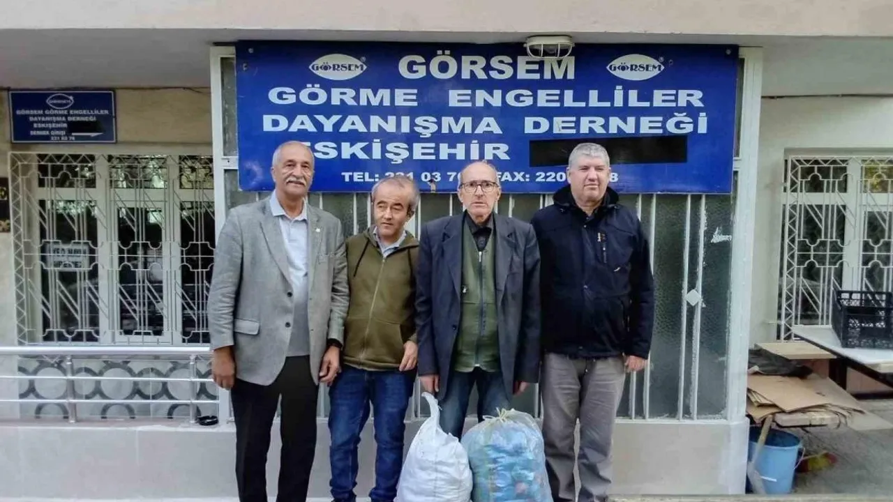 Eskişehir'de bulunan Köy Kültür Evi'nin kurucusu Mehmet Ali Baysak, topladığı 2 çuval mavi kapağı Görme Engelliler Dayanışma Derneği'ne (GÖRSEM) teslim etti.