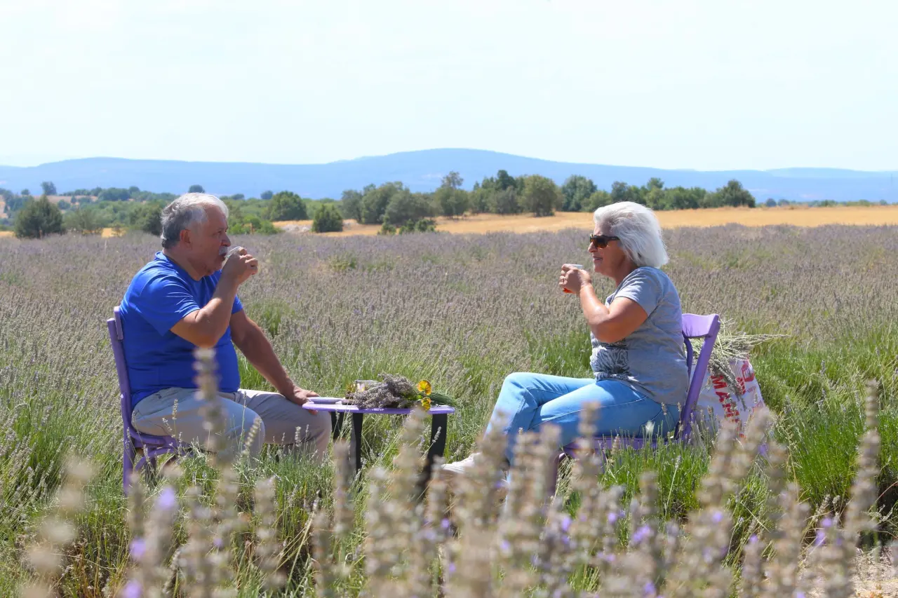 Yaklaşık 5 yıl önce alternatif tarım ürünü olarak lavanta ekmeye karar veren İnan, lavantanın verimli sonuçlar verdiğini belirtiyor. Morun her tonunu barındıran lavanta tarlasında, ziyaretçiler hem doğanın tadını çıkarıyor hem de bol bol fotoğraf çektiriyor. Özellikle gün batımında gelen fotoğrafçılar ve çiftler, kartpostallık kareler yakalıyor.