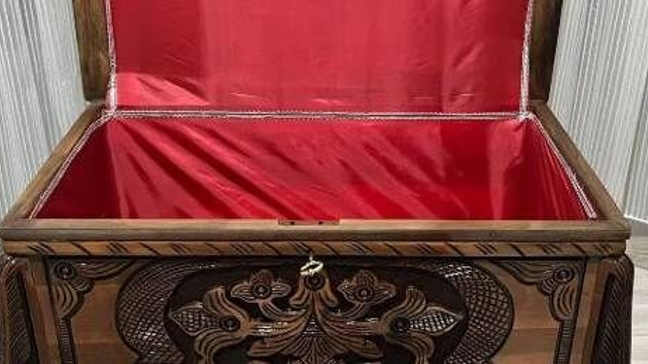 Tanım: Kahramanmaraş oyma çeyiz sandığı, ceviz ağacından yapılan ve el işçiliğiyle süslenen geleneksel sandıktır.