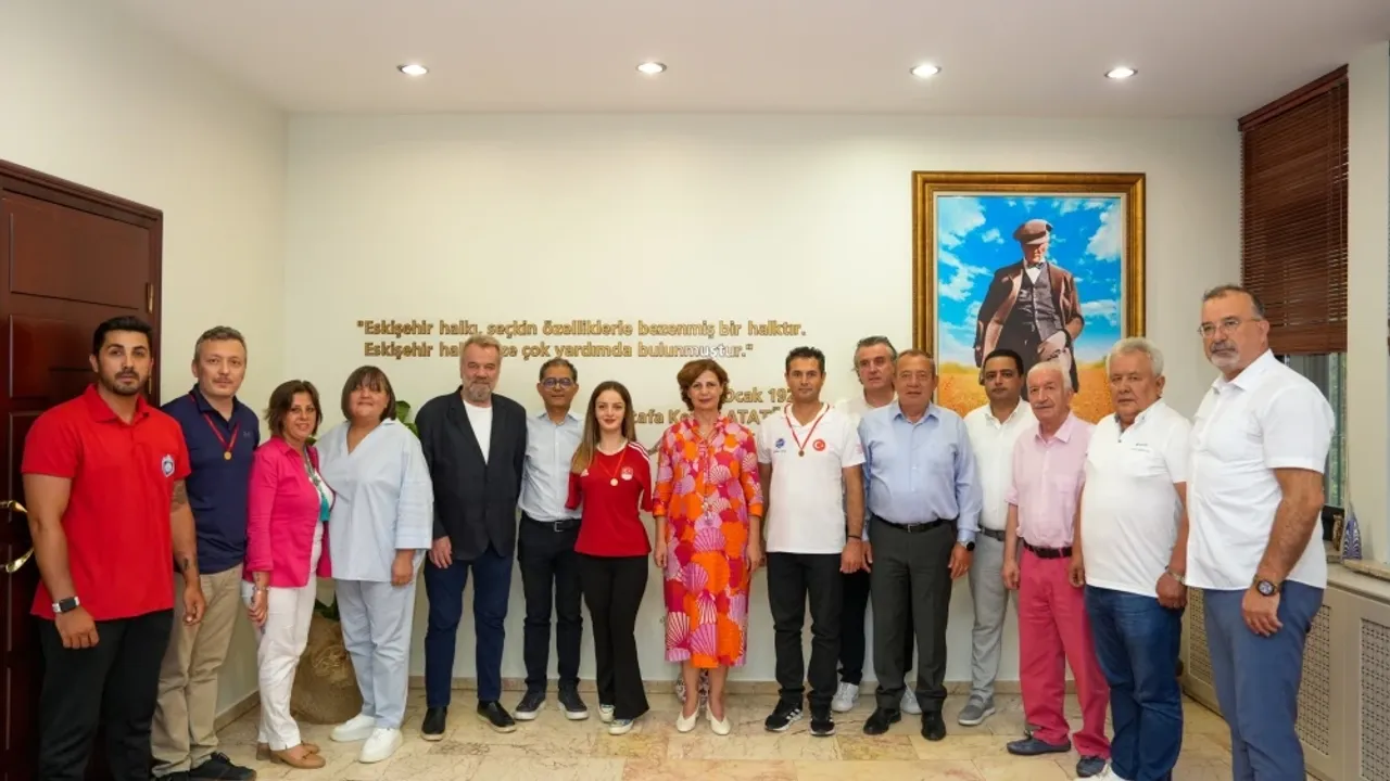 Başkan Ünlüce, milli sporcuları ve Eskişehir Büyükşehir Gençlik ve Spor Kulübü yöneticilerini makamında ağırladı. Sporcuların başarısından duyduğu memnuniyeti dile getiren Ünlüce, "Çok güzel işlere imza atıyorsunuz ve bizler sizinle gurur duyuyoruz. Her zaman Eskişehir Büyükşehir Belediyesi olarak arkanızdayız. Bizlere bu mutluluğu yaşattığınız için teşekkür ederiz," ifadelerini kullandı.
