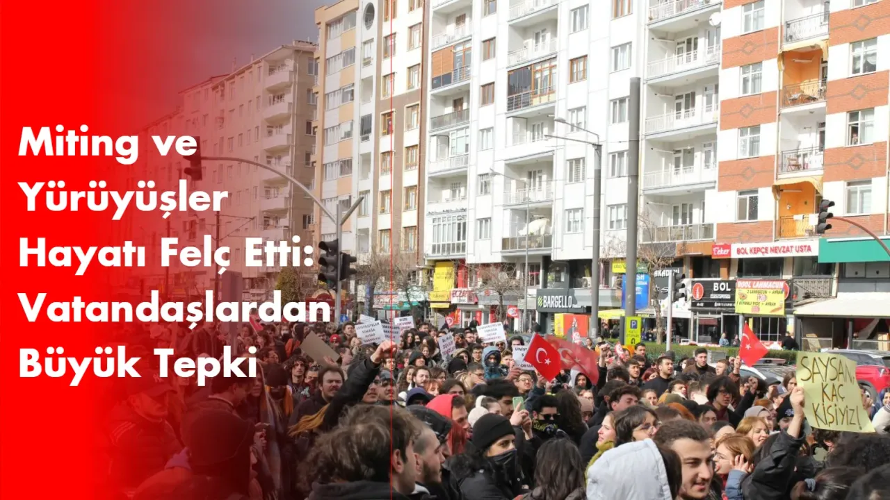 Son günlerde Eskişehir’de artan miting ve yürüyüşler, şehirdeki gündelik hayatı olumsuz yönde etkiliyor. İş çıkış saatine denk gelen bu etkinlikler nedeniyle ulaşımda ciddi aksamalar yaşanırken, vatandaşlar mağduriyetlerini dile getiriyor. İşten çıkıp evine gitmek isteyen, çocuğunu hastaneye yetiştirmeye çalışan veya günlük işlerini halletmeye çalışan birçok kişi, yürüyüşler nedeniyle saatlerce yolda kalıyor.
