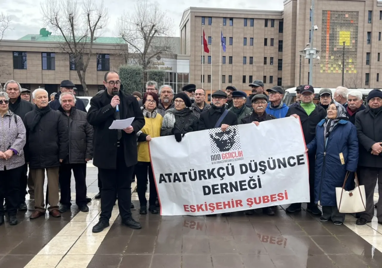 Atatürk Anıtı’na çelenk sunumunun ardından saygı duruşunda bulunuldu ve İstiklal Marşı okundu. Törende konuşan Atatürkçü Düşünce Derneği Eskişehir Şube Başkanı Mehmet Avcı, yaptıkları buluşmanın bir anma töreninden öte anlam taşıdığını belirterek, Cumhuriyet’e karşı duruş sergilemek için toplandıklarını ifade etti.
