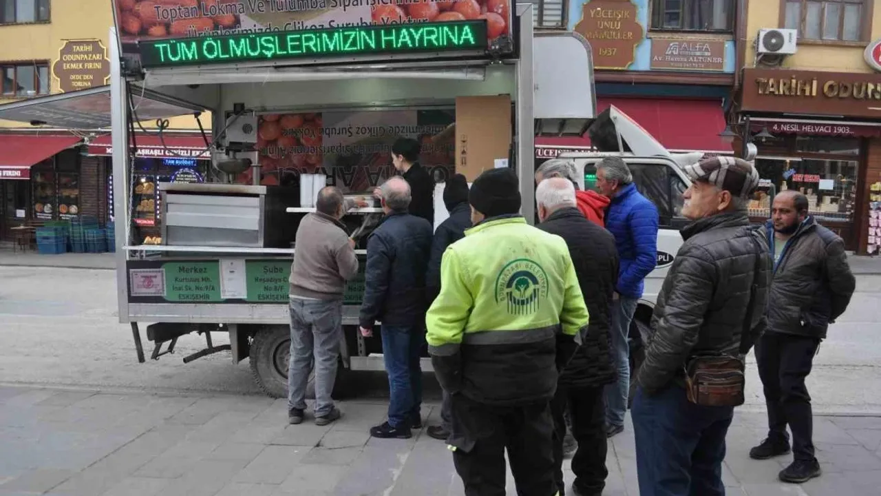Odunpazarı esnafları kendi aralarında para toplayarak başta Kahramanmaraş’taki depremde vefat eden vatandaşlar olmak üzere bütün ölmüşlerin hayrına lokma dağıtımı yaptırdı.Eskişehir Tarihi Odunpazarı Evleri bölgesindeki esnafların topladıkları parayla yaptırdığı lokma dağıtımı esnasında uzun kuyruklar meydana geldi. Büyük bir kalabalığın oluştuğu dağıtım aracının önünde vatandaşlar sıra beklerken, Tiryakizade Süleymanağa Camii’nin imamının gelmesiyle birlikte depremde ölenlerin hayrına topluca dua okundu. Ramazan ayının yaklaşması sebebiyle hem depremde ölen vatandaşlar, hem de diğer tüm vefat edenler için kendi aralarında para toplayarak lokma döktüren esnaflar, görenlerin takdirini topladı. Karşılaştıkları manzara karşısında duygulanan bazı vatandaşlar ise yapılan etkinliği cep telefonuyla kaydederek sosyal medya hesaplarında paylaştı. Bölgeye gelen turistlerin de takdirini toplayan anlamlı etkinlik, lokmaların bitmesiyle ve kalabalığın dağılmasıyla son buldu.
