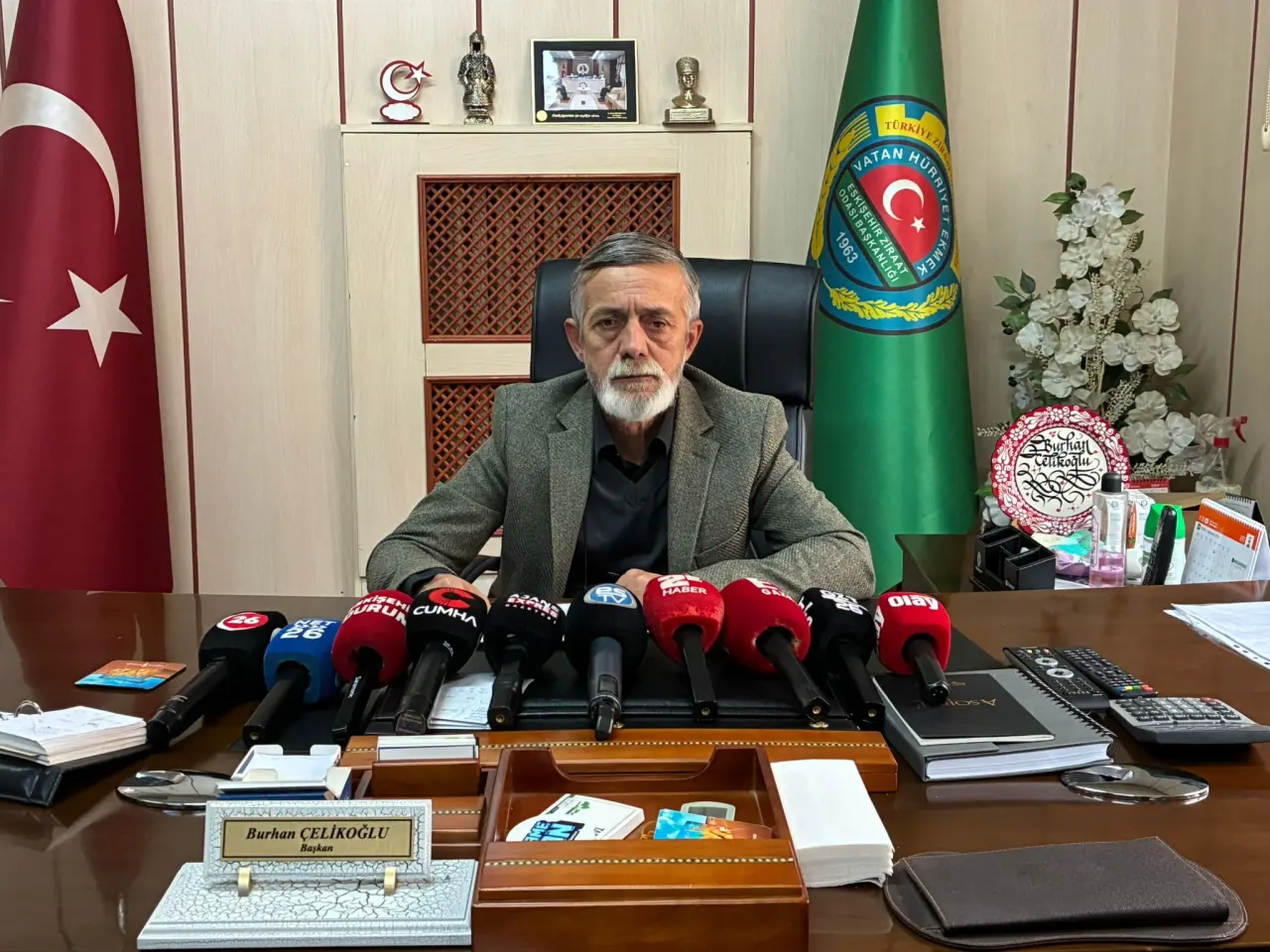 Odunpazarı Ziraat Odası Başkanı Burhan Çelikoğlu, düzenlediği basın açıklamasında çiftçilerin yaşadığı ekonomik sıkıntıları dile getirerek Recep Tayyip Erdoğan’a seslendi. Çelikoğlu, son üç yıldır çiftçinin para kazanamadığını, artan maliyetler ve doğal afetler nedeniyle üretimin sürdürülemez noktaya geldiğini ifade etti. 2025 yılının üretici açısından “acıyla dolu” geçtiğini belirten Çelikoğlu, geçen yıl yaşanan zirai don nedeniyle Eskişehir’de mısırda yüzde 20, arpa ve buğdayda ise yüzde 20-25 oranında verim kaybı yaşandığını söyledi. Meyvede oluşan don zararlarının karşılandığını hatırlatan Çelikoğlu, hububat üreticilerinin de zararlarının telafi edilmesini talep etti.