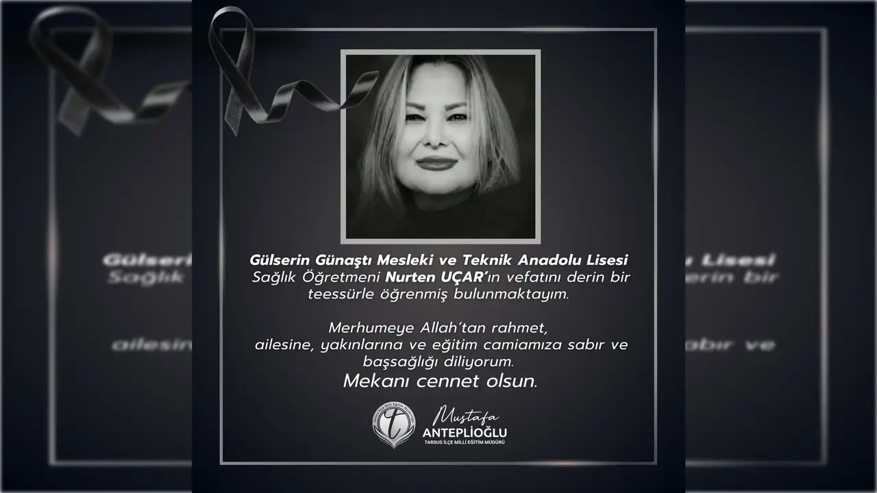 Nurten Uçar’ın vefat haberi üzerine Tarsus İlçe Millî Eğitim Müdürü Mustafa Anteplioğlu bir taziye mesajı yayımladı. Anteplioğlu mesajında şu ifadelere yer verdi: