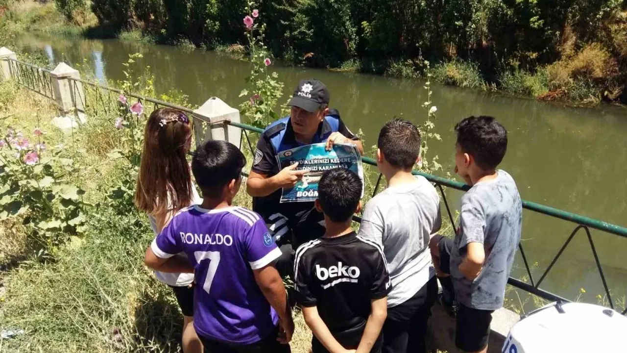 Eskişehir'de polis ekiplerince; güvenli olmayan çay, gölet ve sulama kanalı gibi yerlere serinlemek amacıyla girilmesi nedeniyle vatandaşlara yönelik bilgilendirme çalışmaları gerçekleştirildi.