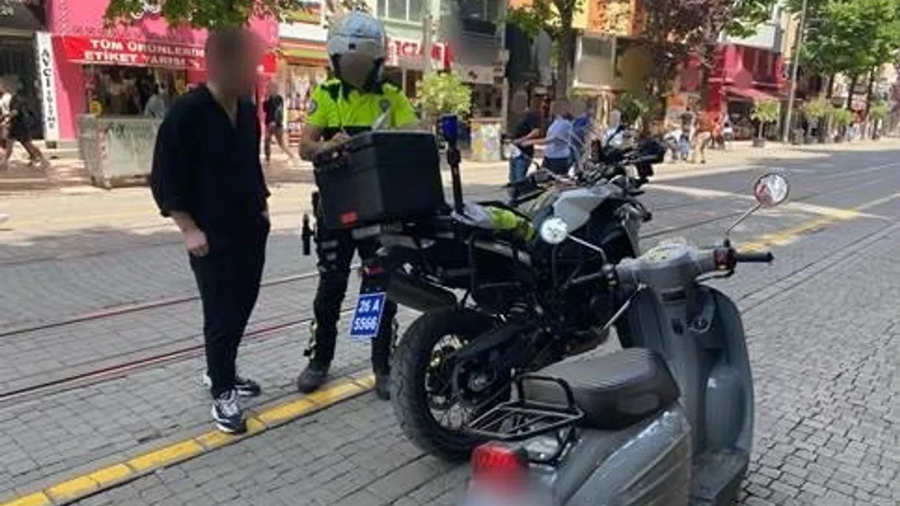 Eskişehir'de trafik ekipleri kapalı yaya bölgelerine giriş yapan motosiklet ve motorlu bisiklet sürücüsüne ceza yazdı.