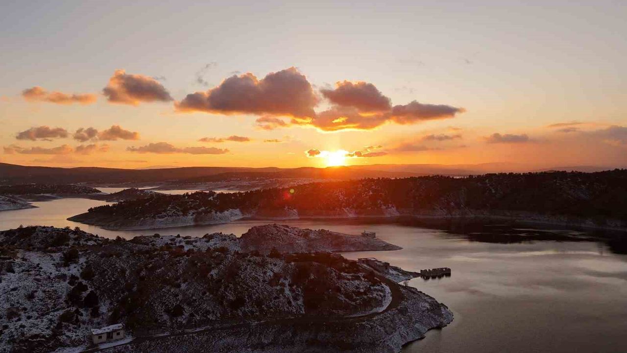 Dron ile havadan görüntülenen bu eşsiz manzara, doğaseverlerin ilgisini çekti. Alp Ceylan tarafından kaydedilen görüntüler, adeta kartpostallık kareler oluşturdu. Güneşin tepelerin arkasına doğru batışıyla ortaya çıkan kızıl ve turuncu tonlar, Porsuk Barajı’nın huzur veren atmosferini gözler önüne serdi.