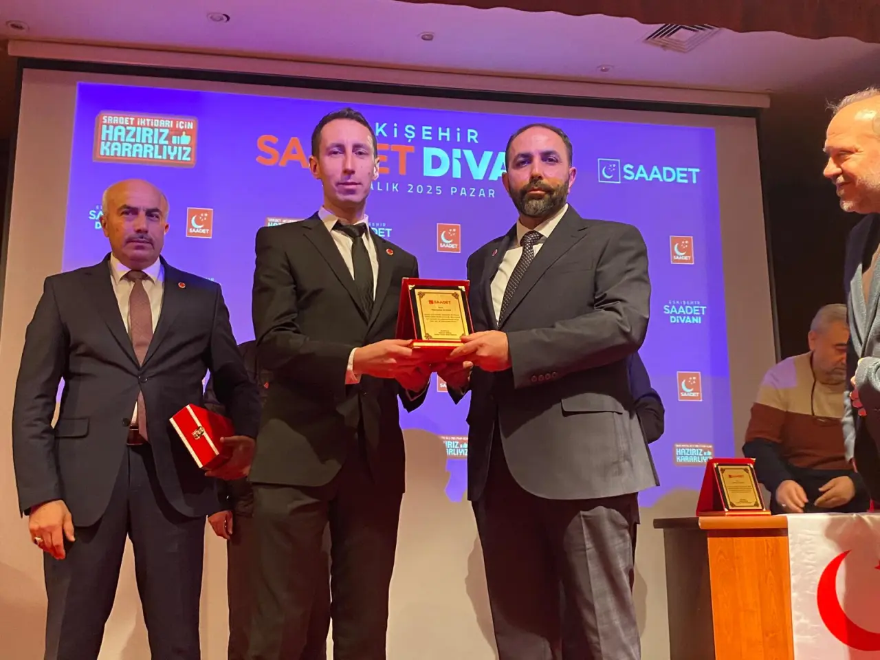 Konuşmanın ardından Saadet Partisi’ne yeni katılan üyelere rozet takdimi gerçekleştirildi. Hüseyin Saydam, partiye katılan yeni üyelere rozetlerini takarak, birlik ve beraberlik mesajı verdi.