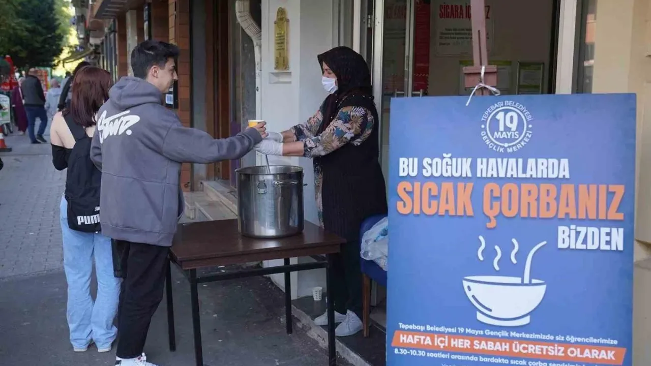 Tepebaşı Belediyesinin sabah saatlerinde öğrenciler için gerçekleştirdiği çorba ikramı devam ediyor. Sabah soğuğunda ikram edilen çorbayı içen öğrenciler, Tepebaşı Belediyesine teşekkür ediyor.Tepebaşı Belediyesi, Gençlik Merkezleri ile gençlerin yanında olmaya devam ediyor. Bu kapsamda 19 Mayıs Gençlik Merkezi’nde, sabah okula giden üniversite öğrencileri için saat 08.30’da başlayan ücretsiz çorba ikramı sürüyor. Sabah saatlerinde okullarına giden öğrenciler, sıcak çorba ile soğuk havanın etkisinin azaldığını söyleyerek Tepebaşı Belediyesi’ne teşekkür ediyor. Gençler, ağırlaşan ekonomik şartlar nedeniyle çorba ikramının, bütçelerine katkı sağladığını da ifade ediyor.