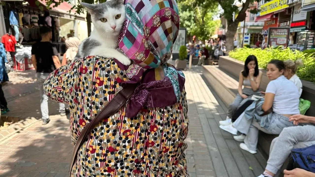Eskişehir’de yaşayan bir kadın, 3 yıl önce yavruyken sahiplendiği ve Boncuk ismini verdiği kedisi ile kenti dolaşıyor. Sahibi fatura yatırmaktan alışverişe kadar dışarıda olan bütün işlerine Boncuk’u da götürüyor. 3 yaşındaki kedisini omzunu almadan dışarıya adeta adım atmayan kadın, çevredeki vatandaşların yoğun ilgisine maruz kalıyor. Kucaktan inmeyen kedinin bakımlı ve temiz görünümüyle de dikkat çekiyor.