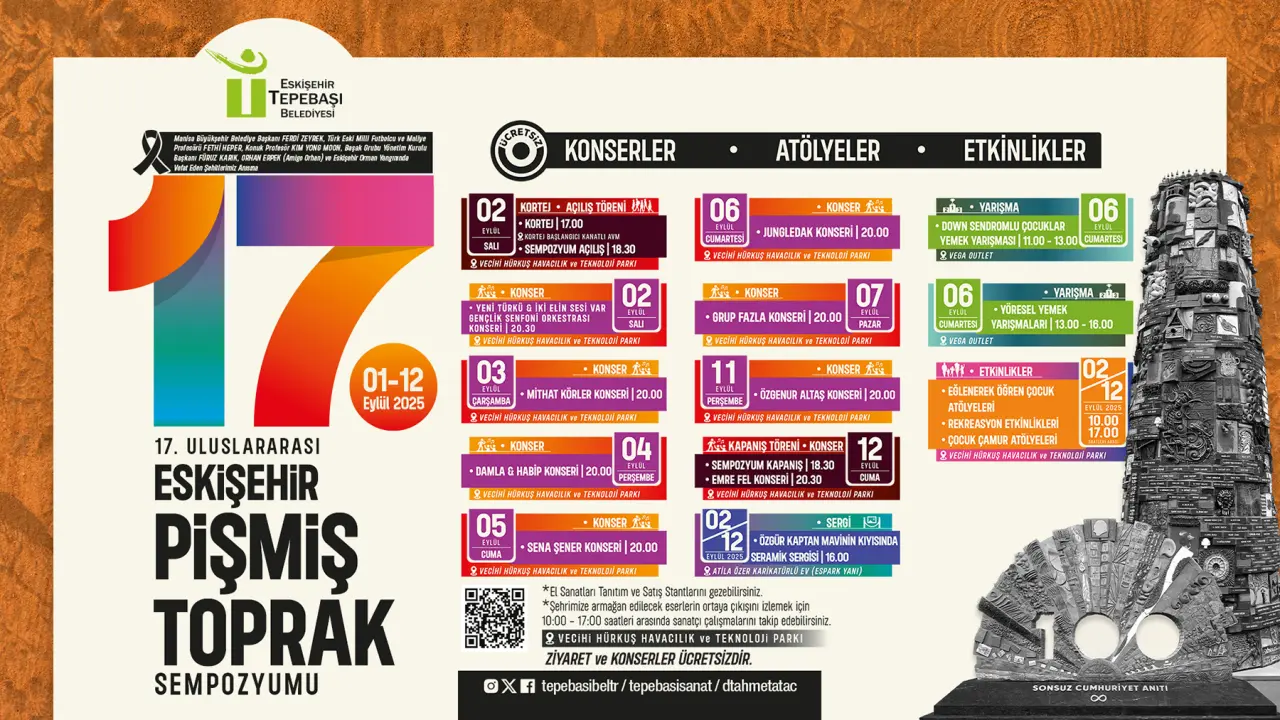 Kortejin ardından Uluslararası Eskişehir Pişmiş Toprak Sempozyumu’nun açılış töreni 2 Eylül Salı günü saat 18.30’da Vecihi Hürkuş Havacılık ve Teknoloji Parkı’nda gerçekleşecek. Törenin ardından Yeni Türkü ve Tepebaşı Belediyesi İki Elin Sesi Var Gençlik Senfoni Orkestrası’nın konseri Eskişehirliler ile buluşacak.