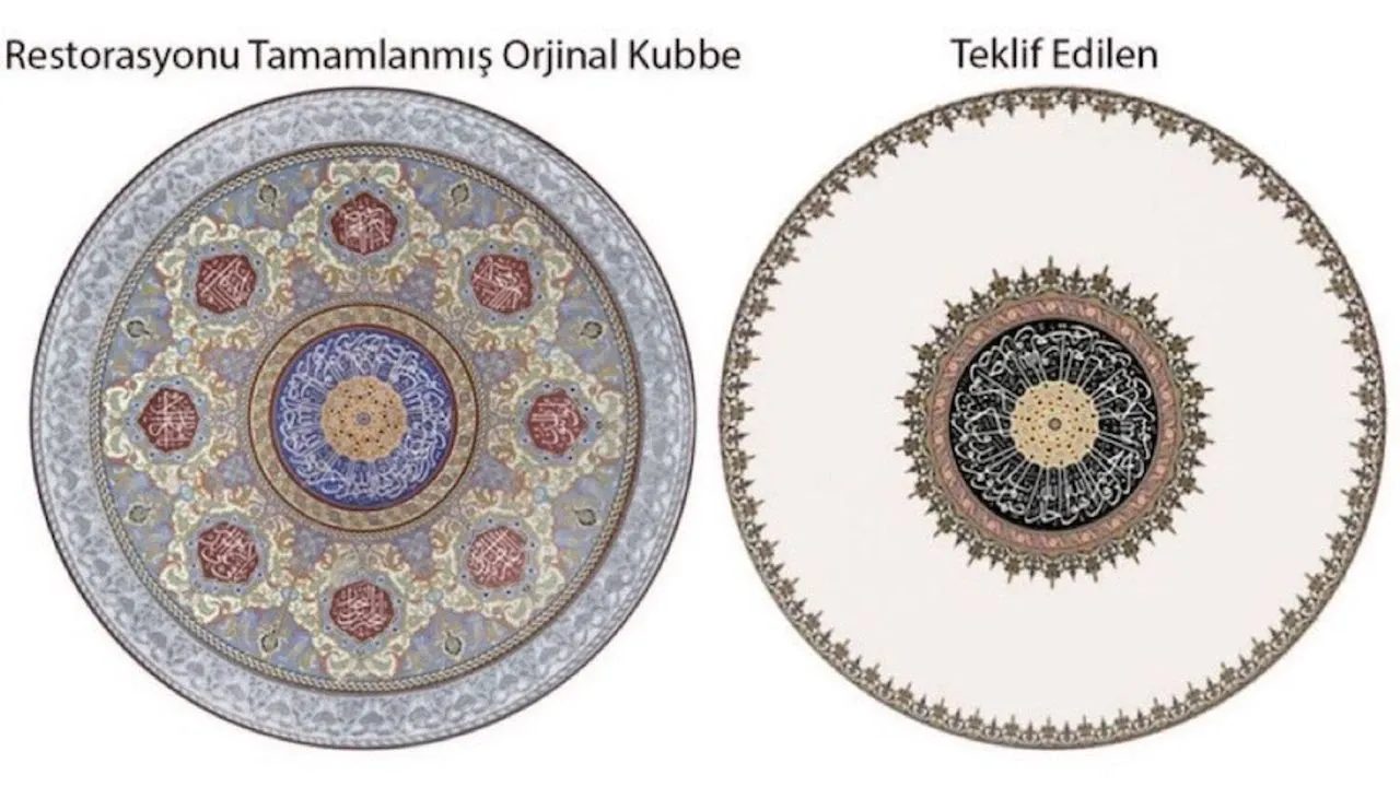 Plan: Mevcut kubbe süslemelerinin tamamen kazınması ve yerine Mimar Sinan dönemine uygun olduğu iddia edilen yeni tezyinatın yapılması öngörülüyordu.