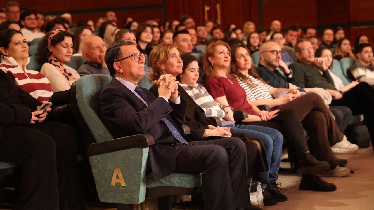 Şef Rengim Gökmen, konser sırasında eserler hakkında bilgi vererek bu özel günde sahnede olmaktan duyduğu memnuniyeti dile getirdi.