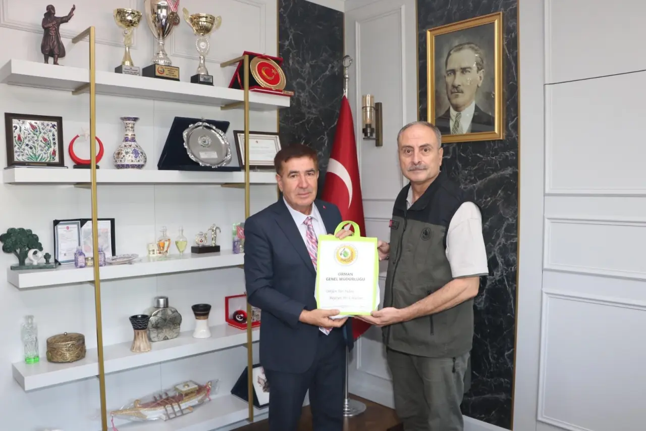 Seyitgazi ilçesinde yanan ormanların yerine ağaçlandırma çalışmaları yapılması için önemli bir iş birliği adımı atıldı. Bu kapsamda Hace Derneği Başkanı Necmettin Başkut, Kızılelma Turan Derneği Başkanı Ahmet Hızlan, ESVAK Eskişehir Şube Başkanı Metin Çalışır ve Mahmudiyeliler Dernek Başkanı Vehap Çimenler ile yönetim kurulu üyeleri, Eskişehir Orman Bölge Müdürü İsmail Çetin ile makamında bir araya geldi.