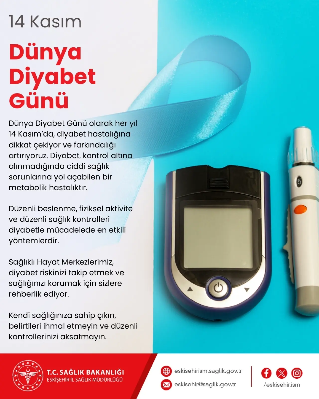 Eskişehir İl Sağlık Müdürü Doç. Dr. Yaşar Bildirici, diyabetin önlenebilir risk faktörleri bulunduğunu belirterek, erken tanı ve düzenli kontrollerin önemine dikkat çekti.
