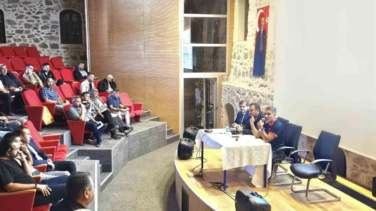 Toplantıda ÇKS İl Sistem Sorumlusu Ziraat Mühendisi Cemil Ağca çiftçilere yönelik olarak Yeni Destekleme Modeli ve Bitkisel Üretim Planlaması konularında sunum gerçekleştirdi. ÇKS İl Sistem Sorumlusu Ziraat Mühendisi Cemil Ağca yaptığı sunumda; 2025-2027 üretim yıllarını kapsayan Bitkisel Üretim Planlaması ile stratejik öneme sahip 13 ürün (arpa, aspir, ayçiçeği (yağlık), buğday, kolza (kanola), fasulye (kuru), mercimek, mısır (dane), nohut, pamuk (kütlü), patates, soğan (kuru), soya) ve bir ürün grubunun (yem bitkileri) planlama kapsamına alındığı, bu ürünlerden hangilerinin ilimiz havzalarında üretimine izin verildiği, havzasında üretimine izin verilmeyen ürün ekildiğinde yapılacak iş ve işlemler hakkında bilgi verdi.