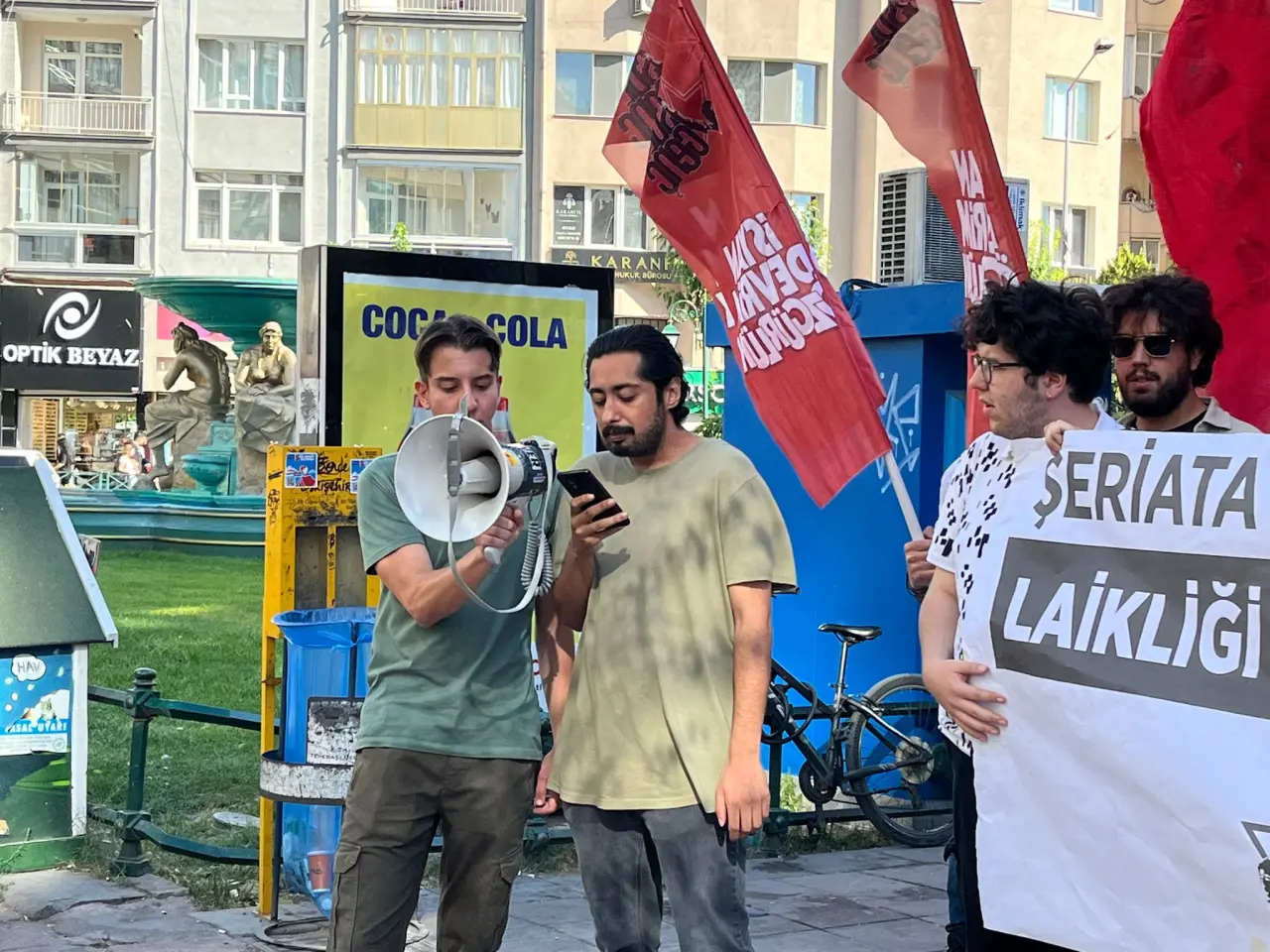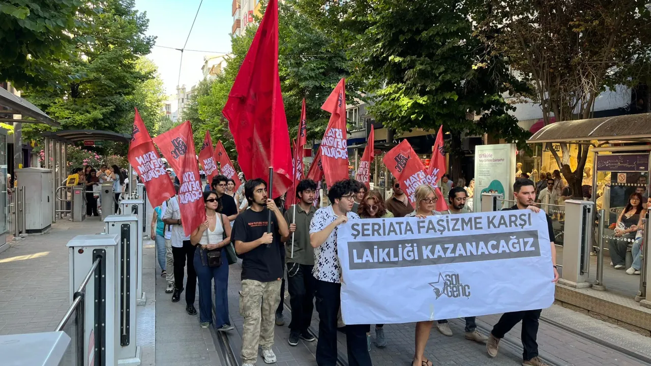 Gül, “Laiklik adım adım tasfiye edilirken, halk yoksulluğa mahkûm ediliyor, cumhuriyetin ilerici kazanımları hedef alınıyor. Ancak biz gençler, bu karanlığa karşı mücadeleden vazgeçmeyeceğiz. Şeriat düzenine, tek adam rejimine ve biata teslim olmayacağız” dedi.