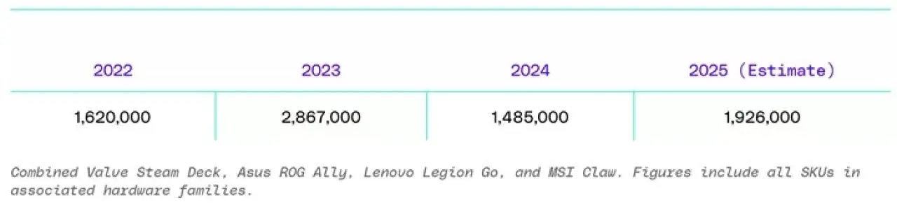 📈 2023: 2.87 milyon sevkiyat ile zirve yaptı. Ancak bu yıl, Asus ROG Ally, Lenovo Legion Go ve MSI Claw gibi rakiplerin pazara girişiyle rekabet arttı.