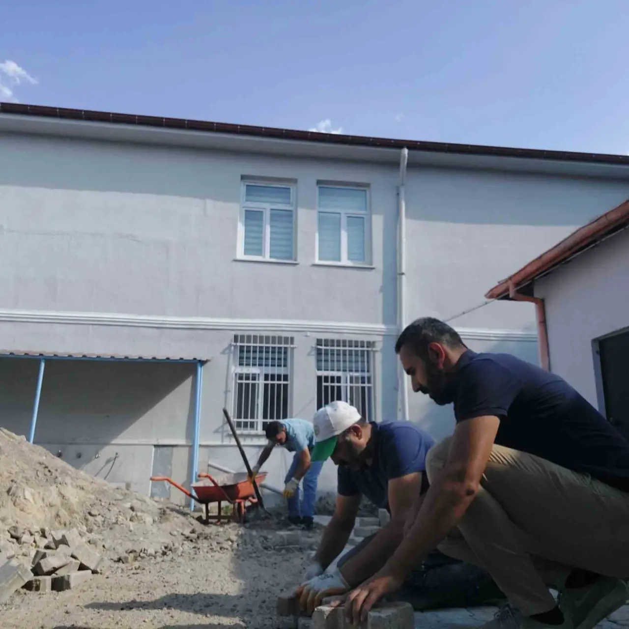 Yaklaşan 2025-2026 eğitim öğretim yılı öncesi okulun fiziki şartlarını iyileştirmeye yönelik başlatılan çalışma, kısa sürede büyük bir aşama kaydederek dikkat çekti. Okul bahçesindeki alanın daha düzenli ve kullanışlı hale gelmesi amacıyla yapılan parke taşı döşeme işleminin en kısa sürede tamamlanması hedefleniyor.