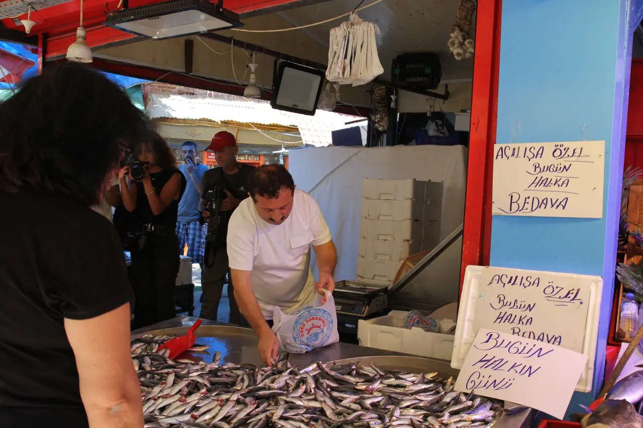 “Herkese bedava balık dağıtıyoruz. Senenin bolluğundan dolayı böyle bir ikramda bulunmak istedik. Geçmiş yıllarda bedava yapmıyorduk ama uygun fiyata satıyorduk. Bu sene ise fiyatlar çok güzel, balıklar ucuz. Hamsi, istavrit, sardalya bol durumda. Daha sezonun başı olmasına rağmen fiyatlar düşük, ilerleyen günlerde daha da düşebilir. Havalar soğudukça balık çoğalır. Duruma bağlı olarak yine ücretsiz balık dağıtabiliriz. Ayrıca makul fiyatlarla vatandaşlara yardımcı olmaya devam edeceğiz.”