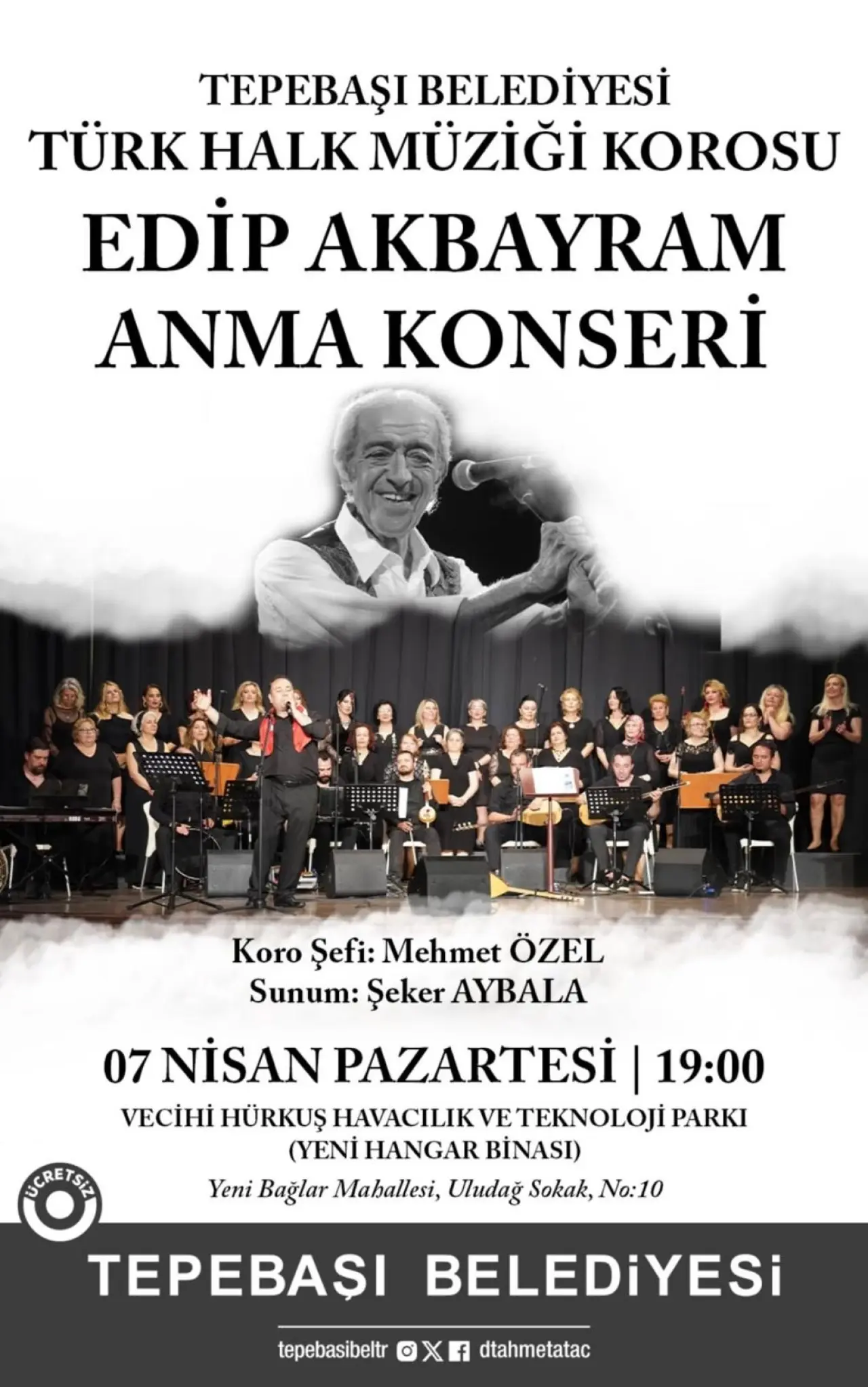 Tepebaşı Belediyesi Türk Halk Müziği Korosu, usta sanatçı Edip Akbayram’ı anmak için özel bir konser düzenliyor. Koro şefliğini Mehmet Özel’in üstlendiği etkinliğin sunuculuğunu Şeker Aybala yapacak.
