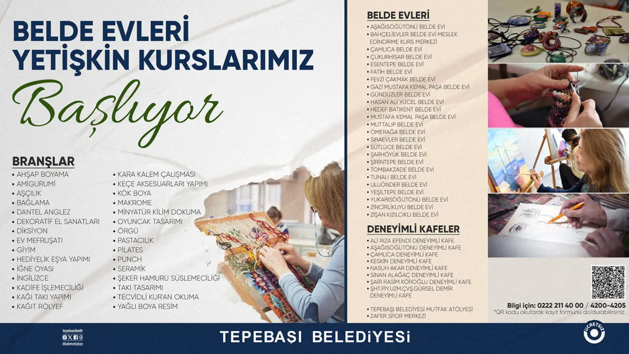 Tepebaşı Belediyesi’nin kursları, hobi atölyelerinden spor aktivitelerine ve dil eğitimlerinden teknolojiye kadar geniş bir yelpazede sunuluyor.