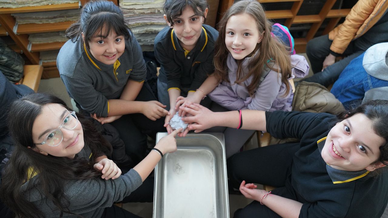 Ziyaret kapsamında öğrencilere geri dönüşümün önemi anlatılırken, atık kağıtların nasıl ayrıştırıldığı, hamura dönüştürüldüğü ve yeniden kullanılabilir kağıt haline getirildiği uygulamalı olarak gösterildi.