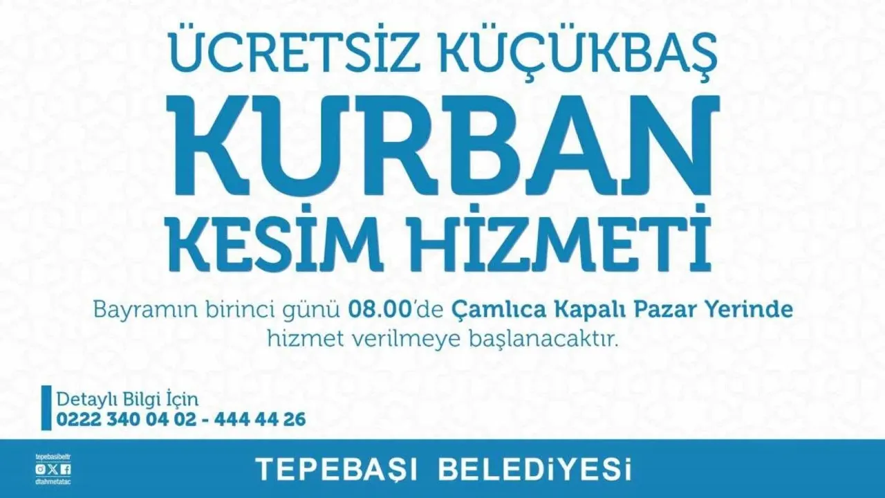Tepebaşı Belediyesi her Kurban Bayramı'nda olduğu gibi bu yıl da vatandaşların kurban ibadetlerini sorunsuz ve huzur içinde yerine getirebilmeleri için çalışmalarına devam ediyor. Çamlıca Kapalı Pazar Yeri, bayramın ilk gününde kent halkının hizmetinde olacak. Küçükbaş kurbanlıkların ücretsiz kesim hizmeti sunulacak olan alanda kesim işlemleri saat 08.00 itibarıyla başlayacak. Tepebaşı Belediyesi yetkilileri, pazar yerinde belediye tarafından yapılacak hazırlıklar ve alınacak tedbirler ile hijyenik bir kesim alanı oluşturulacağını bildirdi. Kurban ibadetini yerine getirmek isteyen Eskişehirliler, kesim alanından sağlıklı ve huzurlu bir şekilde yararlanabilecek.