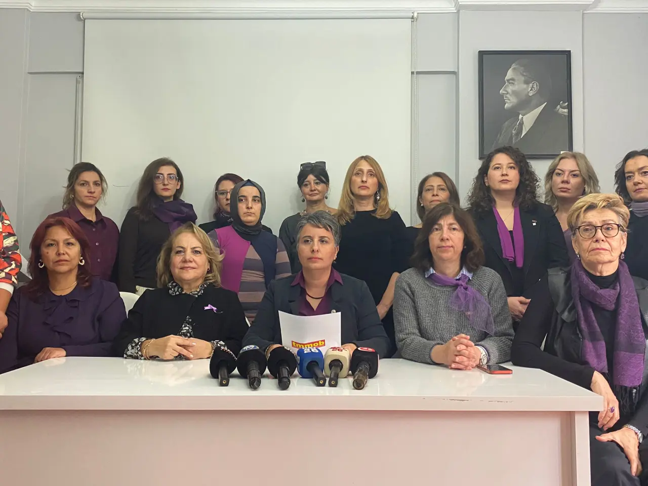 "Biz TMMOB’lu kadınlar; emeğimizle, bilincimizle ve dayanışmamızla bu düzeni değiştirmeye kararlıyız. Eşit, özgür ve şiddetsiz bir yaşam mümkün! Kadına yönelik şiddetin, eşitsizliğin, sessizliğin karşısındayız."