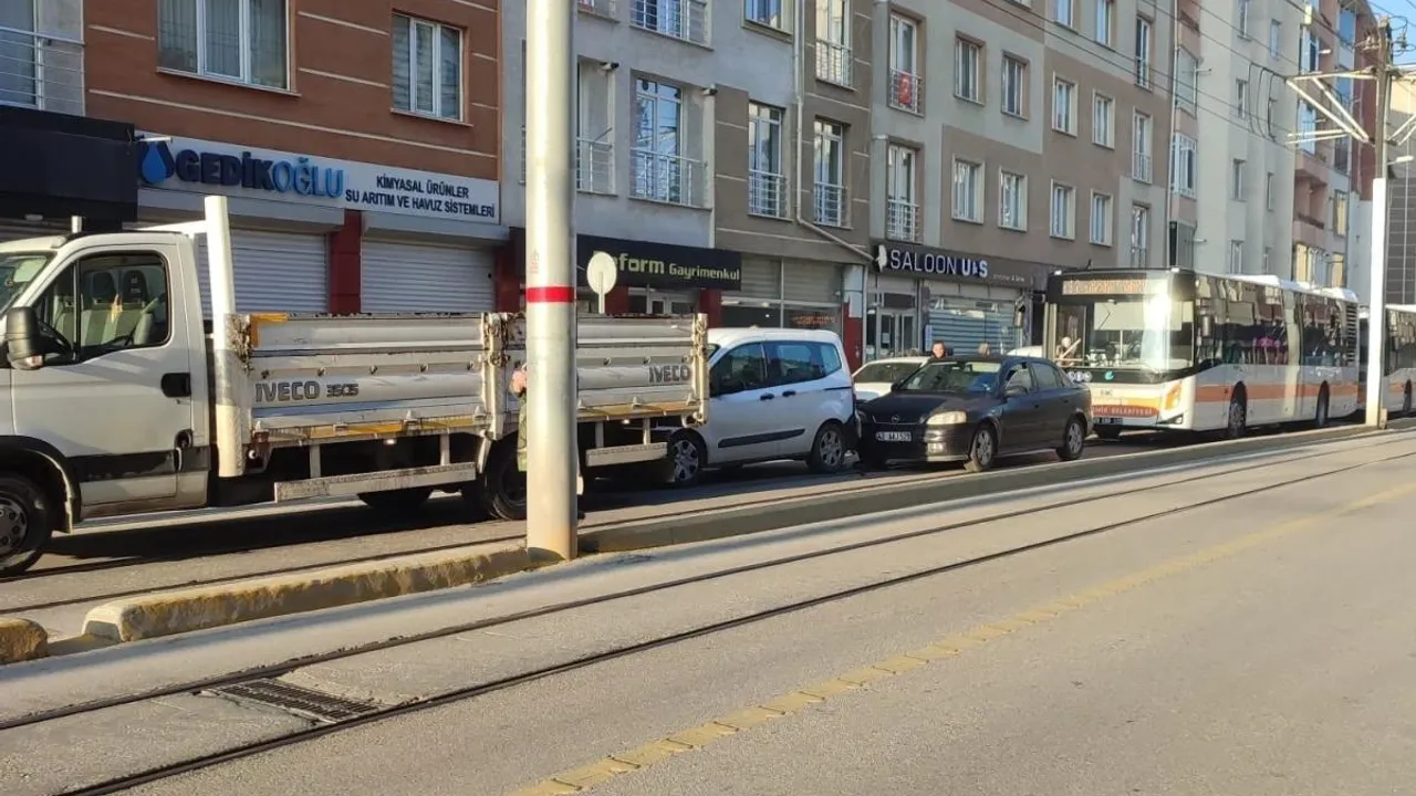 Eskişehir’de tramvay yolu üzerinde 3 aracın çarpışmasıyla meydana gelen maddi hasarlı trafik kazası sonucu şehir içi ulaşımda aksamalar meydana geldi.Kaza, bugün sabah saatlerinde Gaffar Okkan Caddesi üzerinde meydana geldi. Edinilen bilgilere göre, tramvay yolu üzerinde akan trafikte kamyonet, hafif ticari araç ve otomobil çarpıştı. Toplamda 3 aracın çarpışmasıyla meydana gelen maddi hasarlı trafik kazası sonucu tramvay ve otobüs seferlerinde aksamalar yaşandı. Sabah işe ve okula gidiş saati olmasından dolayı, kaza sonucu aksayan trafik birçok vatandaşın mağdur olmasına neden oldu.