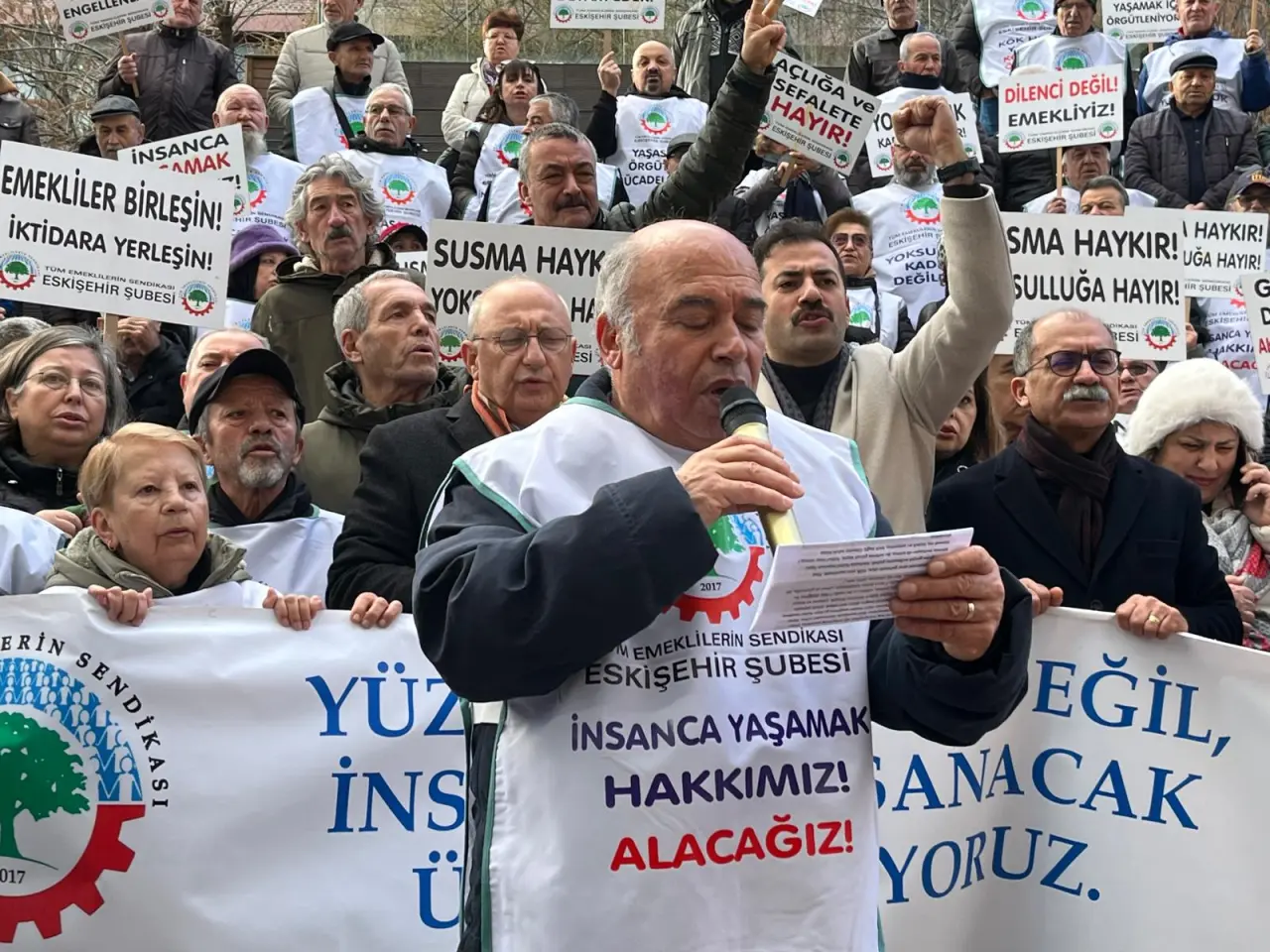 Tüm Emeklilerin Sendikası Eskişehir Şubesi Başkanı Ali Paşa Şanlı, yaptığı yazılı açıklamada emeklilerin yaşadığı ekonomik zorlukları ve hükümetin politikalarını eleştirdi. Şanlı, açıklamasında şu ifadeleri kullandı: “Bu ülkenin en fedakar ve en masum insanları olarak, bize reva görülen ölüm sınırında yaşamayı reddediyoruz. Göstermelik enflasyon hesapları tiyatrosuna kanmayacağımızı bir kez daha ilan ediyoruz. Bizler fabrikalarda, tarlalarda, ülkemize değer katan her yerde vardık. Ancak şimdi, siz tok, biz aç kaldık. Siz saraylarda yaşarken, biz gecekondu bile bulamıyoruz. Hazine ve Maliye Bakanı Mehmet Şimşek, Çalışma ve Sosyal Güvenlik Bakanı Vedat Işıkhan’a soruyorum: Adaletiniz bu mudur? Hak dediğiniz bu mudur?”