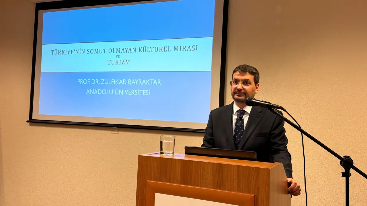 Türkiye Cumhuriyeti Kazan Başkonsolosluğu ev sahipliğinde düzenlenen “Türkiye Kültür Turizmi ve Somut Olmayan Kültürel Miras” başlıklı etkinlik, kültürel diplomasi ve akademik iş birliğinin güzel bir örneği olarak dikkat çekti. Programda, Anadolu Üniversitesi Edebiyat Fakültesi Türk Dili ve Edebiyatı Bölümü Öğretim Üyesi Prof. Dr. Zülfikar Bayraktar, kültürel mirasın turizmle ilişkisini kapsamlı bir sunumla ele aldı. Etkinliğe çok sayıda diplomat, siyasetçi, iş insanı ve sivil toplum başkanları katılım sağladı.